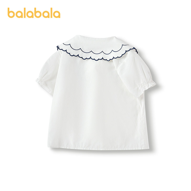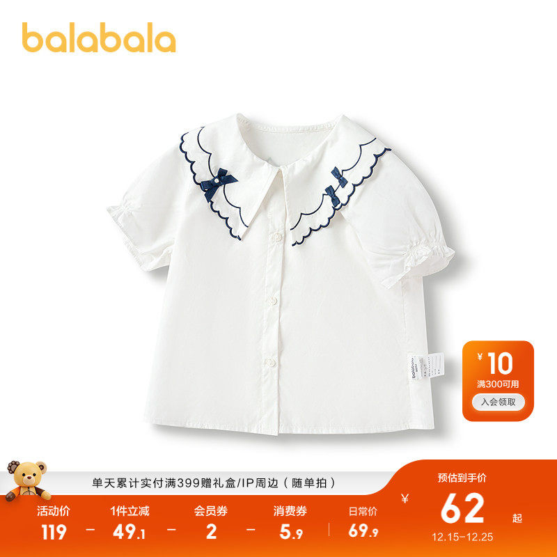 巴拉巴拉童装儿童短袖衬衫学院白衬衣女童夏装翻领上衣蝴蝶结可爱