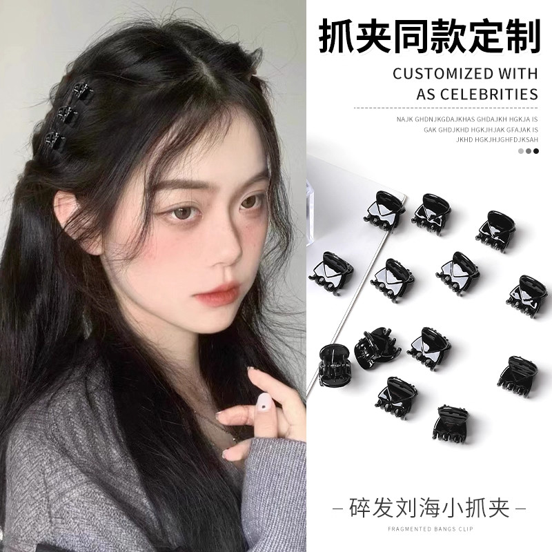 少女小金属刘海碎发一字鸭嘴造型侧边美妆发夹女发卡黑色夹子发饰