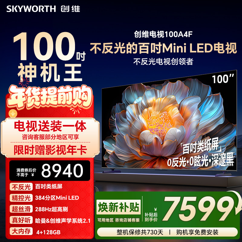 【焕新补贴】创维电视100A4F 100英寸Mini LED电视机液晶以旧换新