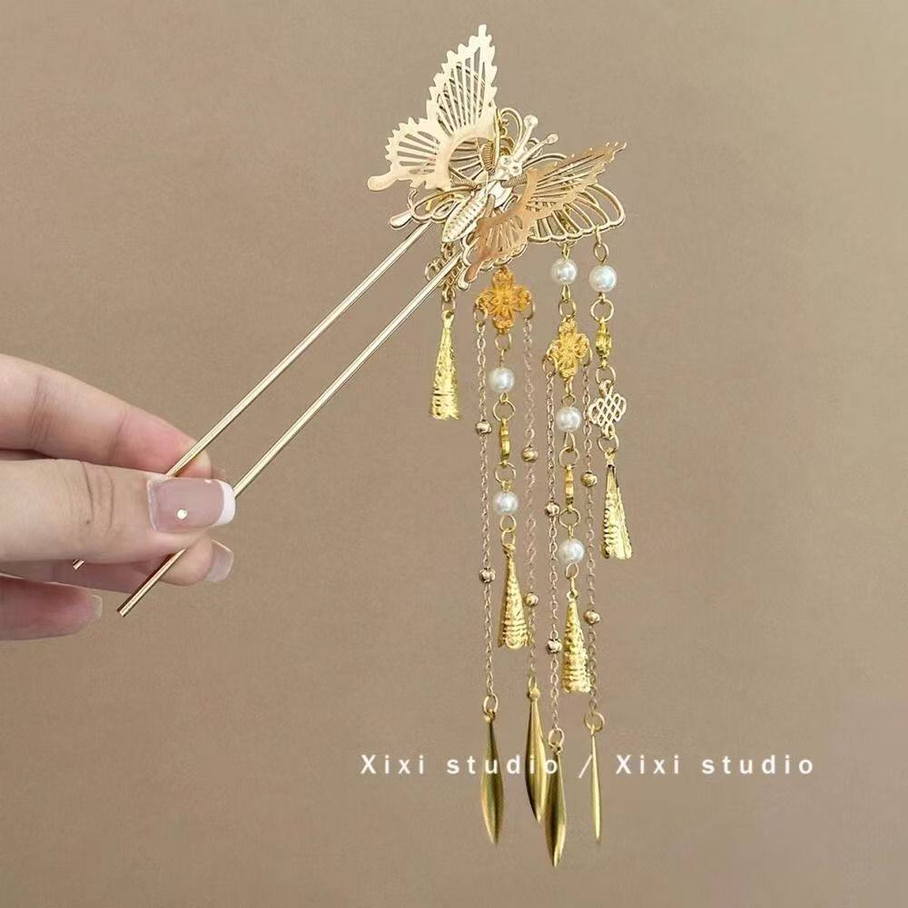 金树簪子发簪楹蝶!新中式金色蝴蝶流苏!高级感U型新品盘发器女
