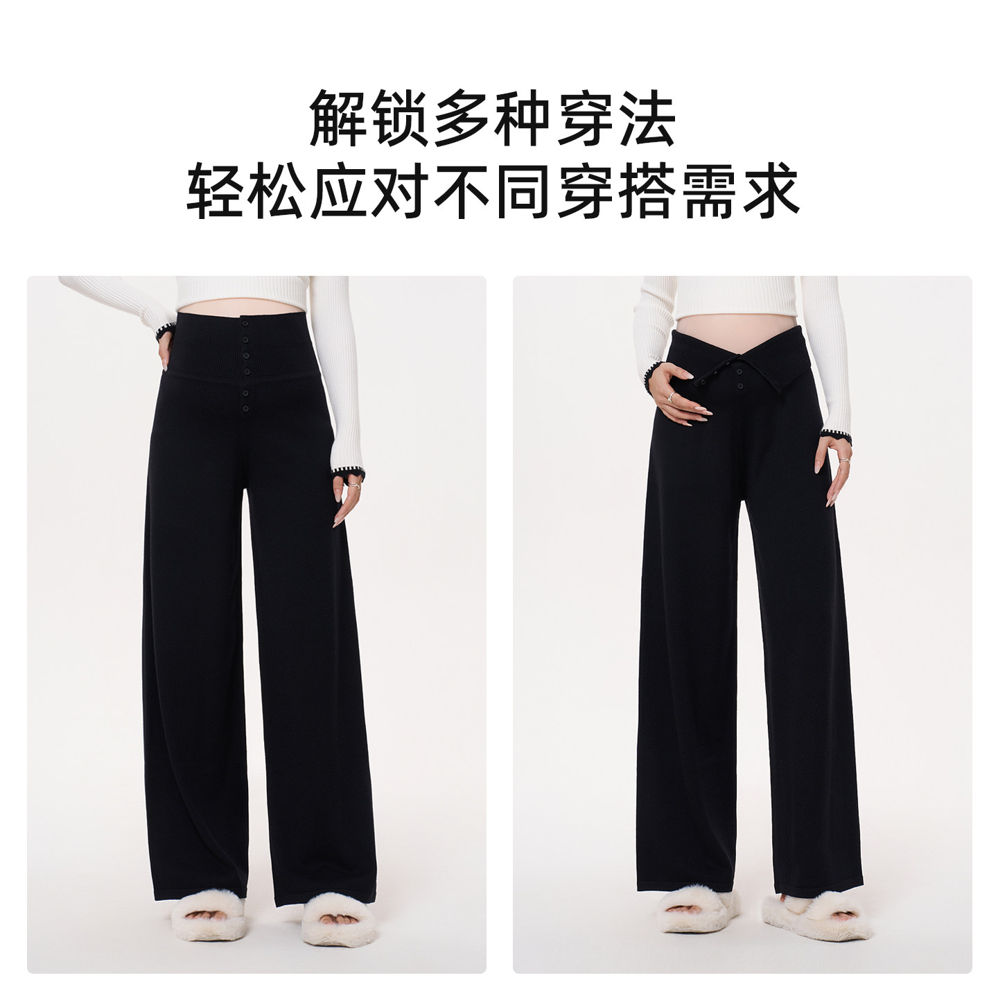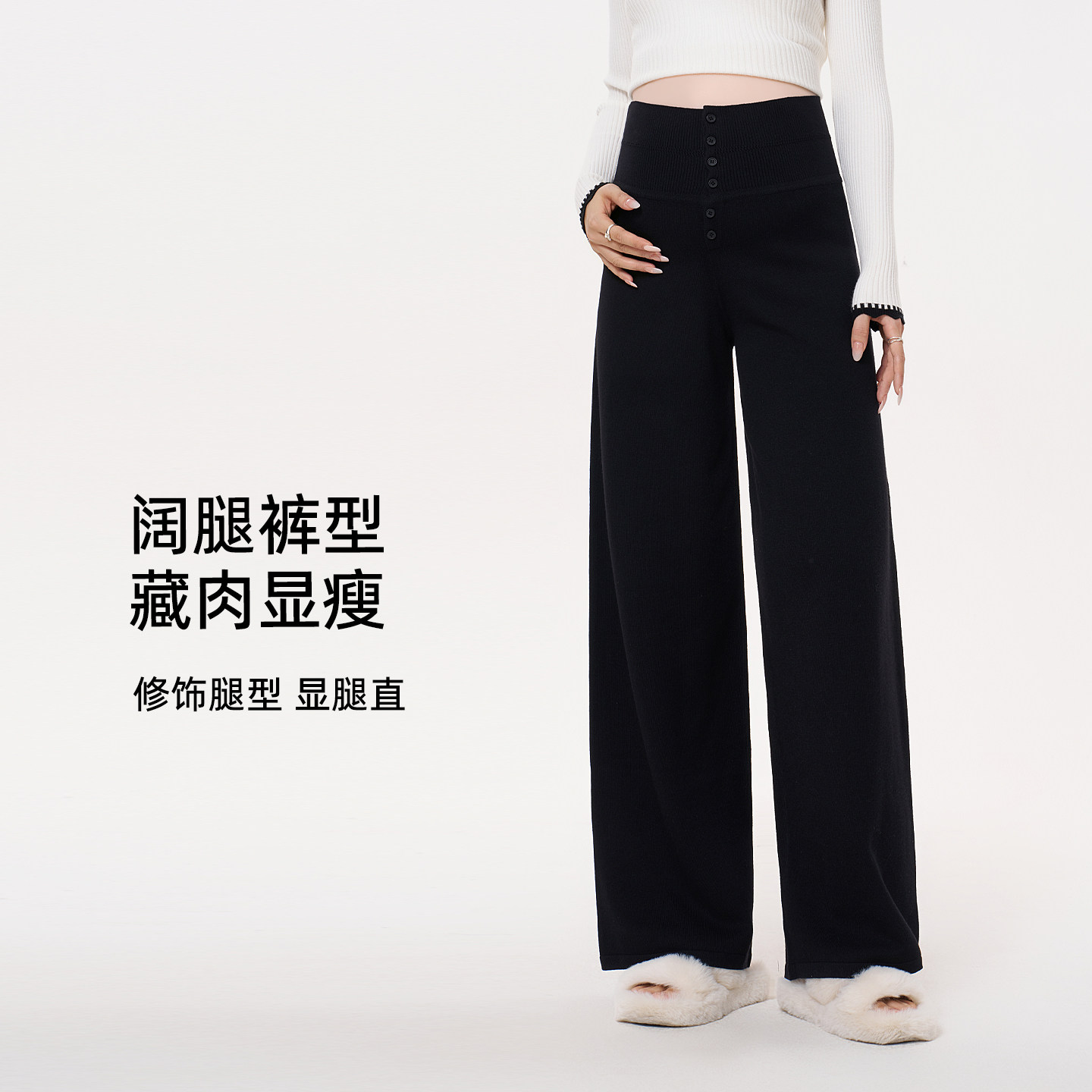 十月结晶孕妇裤冬季小个子垂感阔腿裤松紧腰部妈妈外穿加绒长裤女