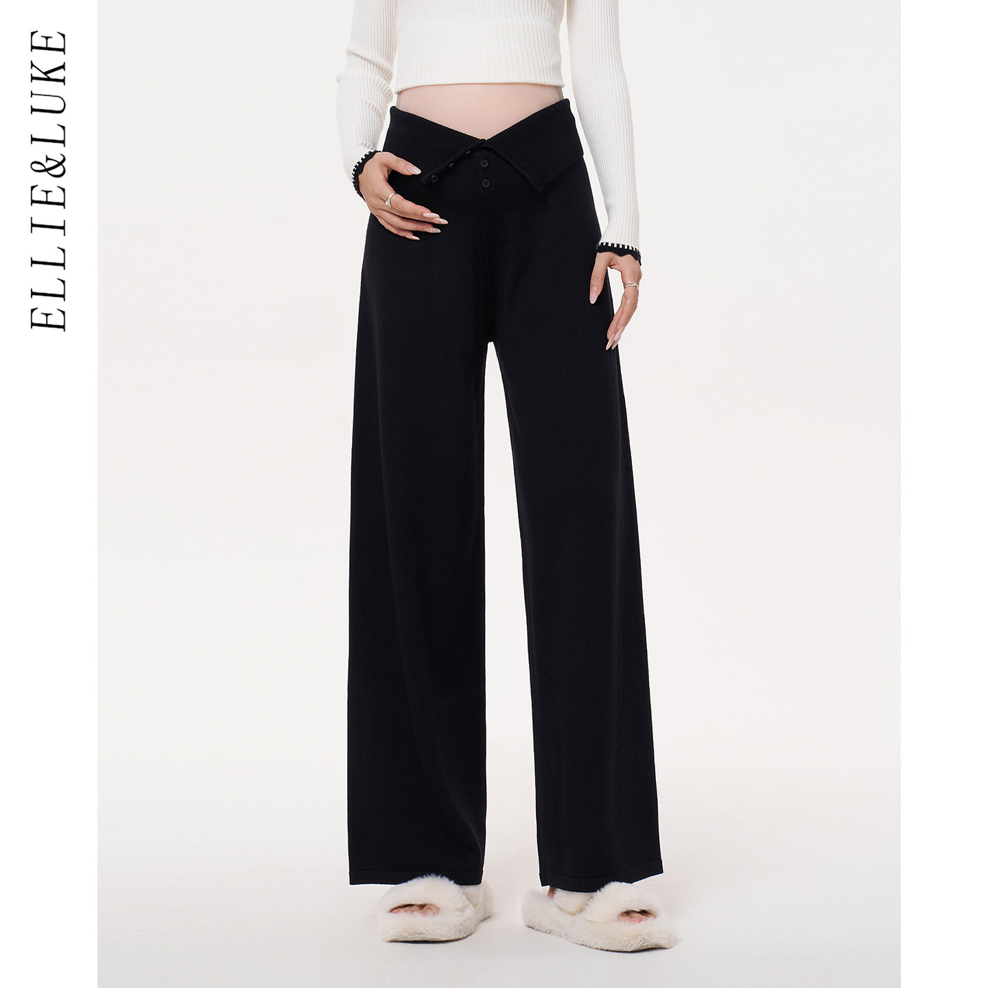 英氏孕妇裤子冬季新款黑色孕期直筒长裤冬款外穿休闲宽松西装裤女