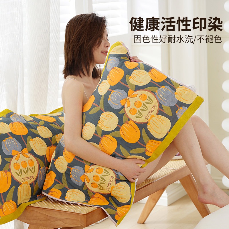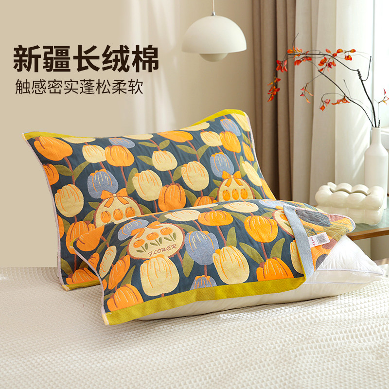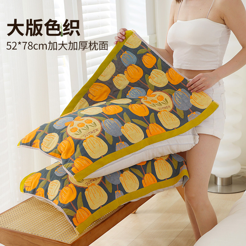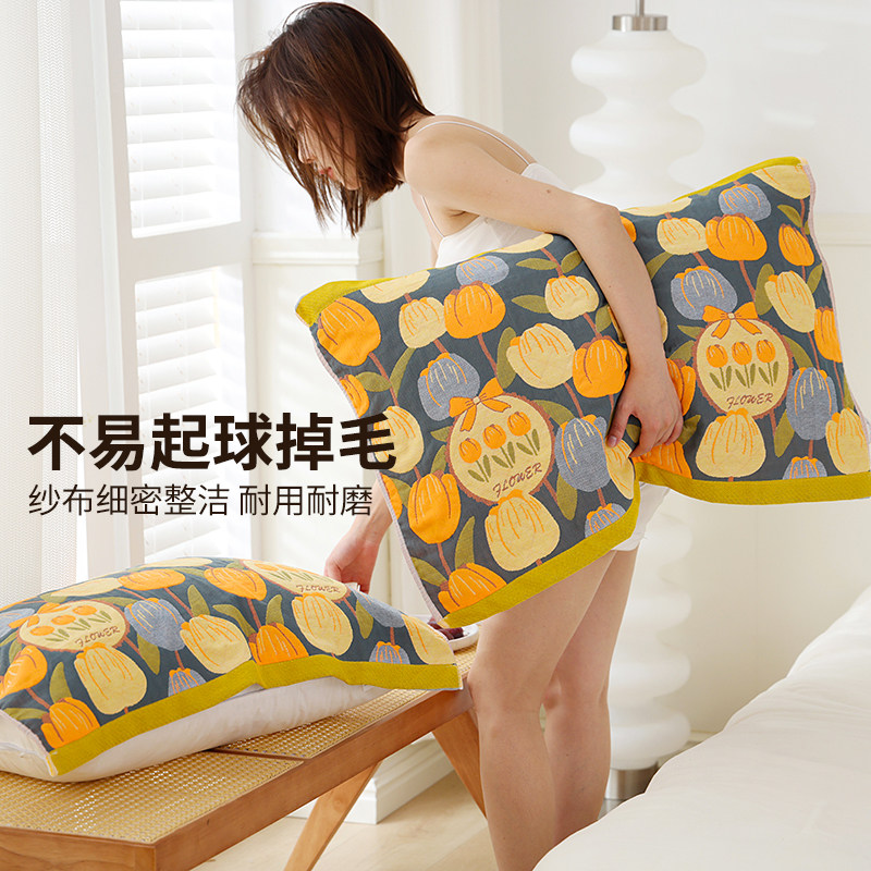 如奕纯棉枕巾一对装家用全棉四层纱布垫巾成人家用透气防头油盖巾