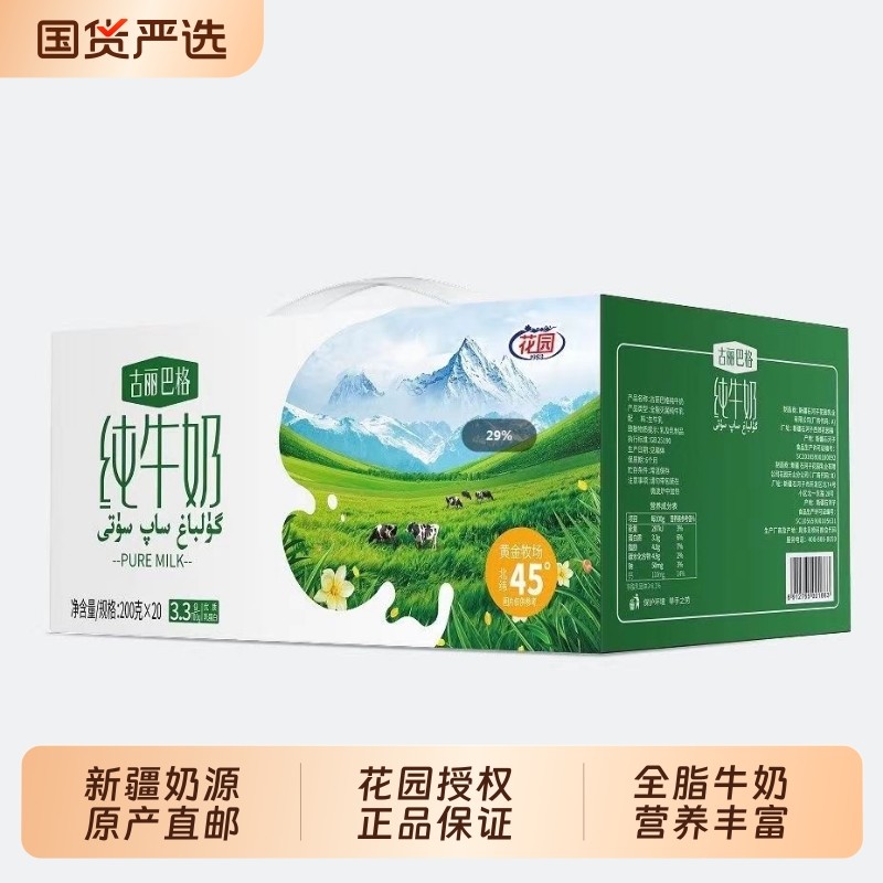 花园黄金牧场纯牛奶200ml×20盒×2整箱新疆高端全脂营养早餐奶