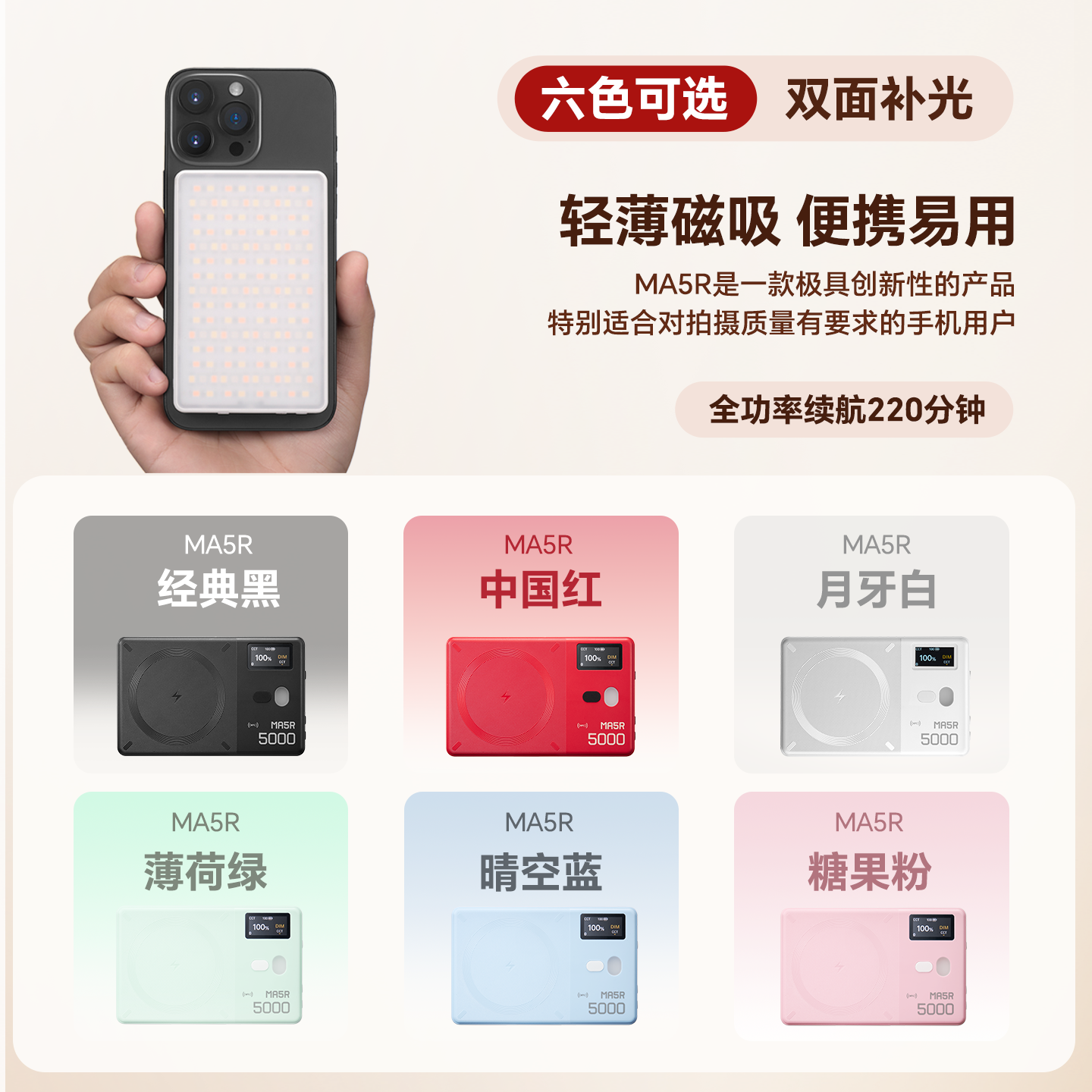 神牛MA5R磁吸全彩双色迷你自拍led补光灯