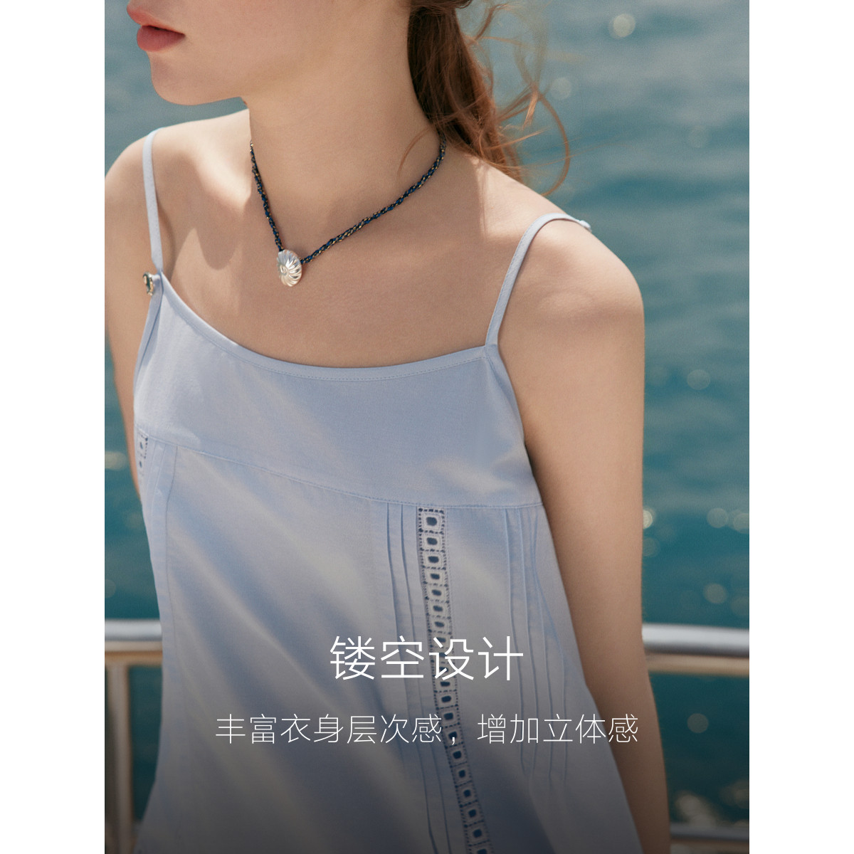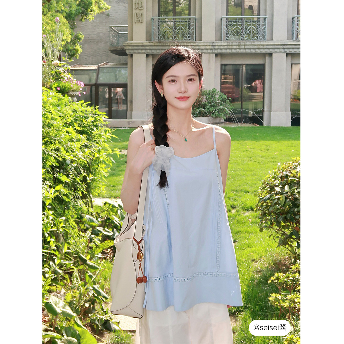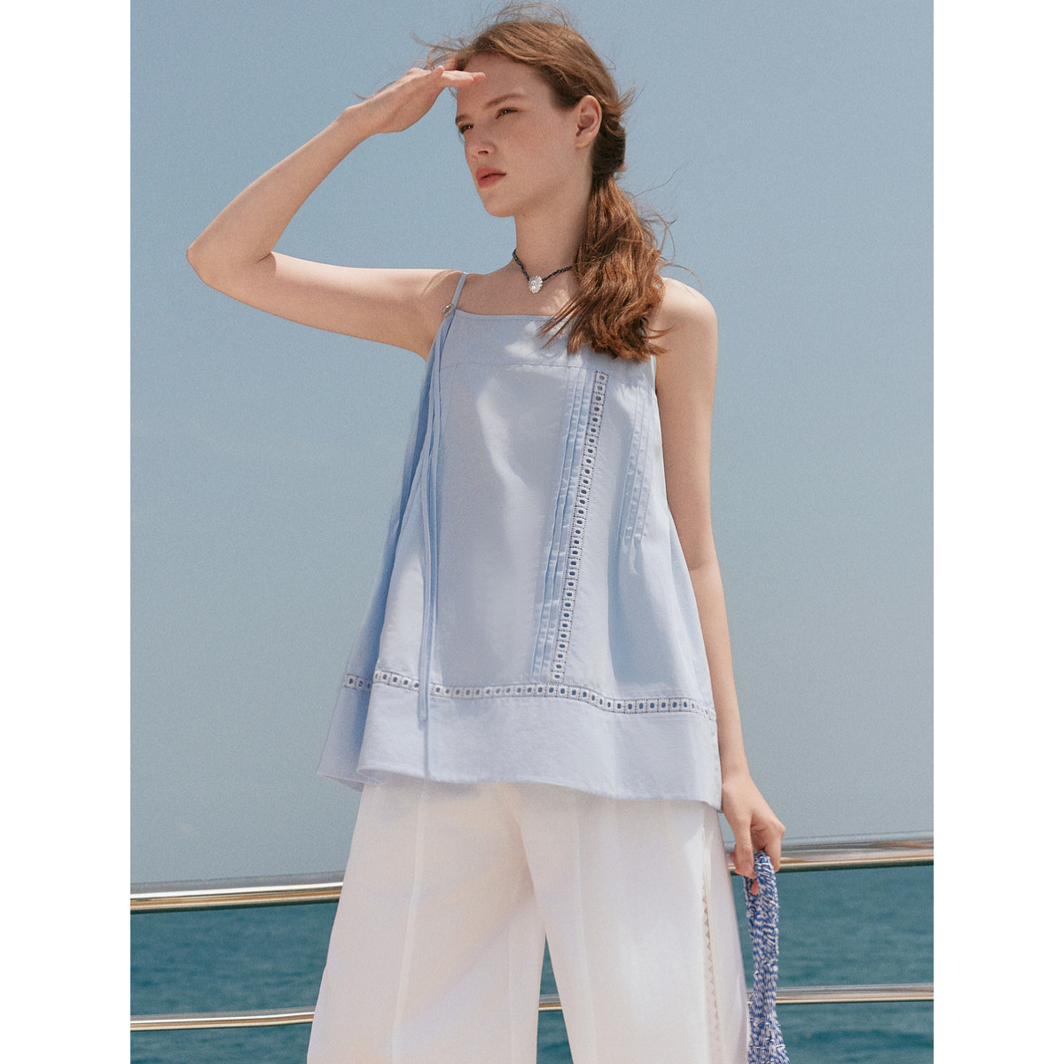 【海岛半夏】ELLE航海蓝色亚麻吊带女2025夏季新款莱赛尔天丝上衣