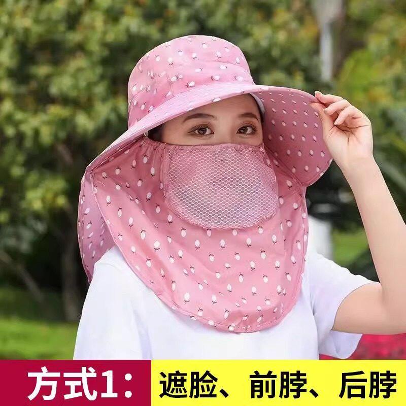 新款防晒帽夏季面罩太阳帽女凉帽防紫外线采茶骑车遮阳帽大帽檐