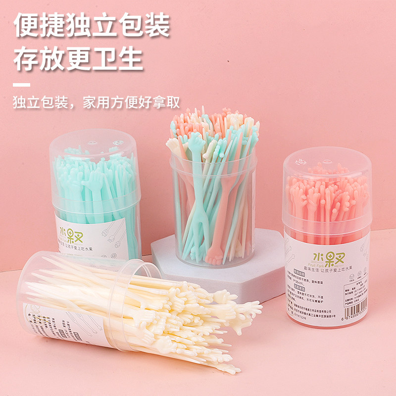 水果叉创意蛋糕甜品叉一次性塑料家用吃水果小叉子水果签食品级
