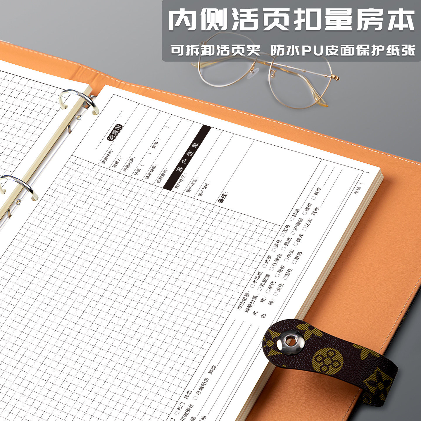 A4量尺本设计师量房专用本室内装修设计测量本画草图施工用笔记本子装潢全屋定制橱柜公司加厚方格绘图记录本