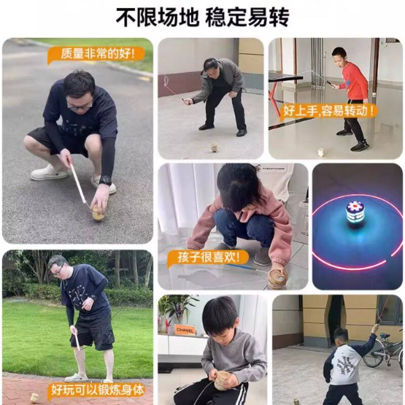 实木陀螺冰猴儿童玩具成人健身专用冰嘎男孩老式木质抽打带鞭绳子