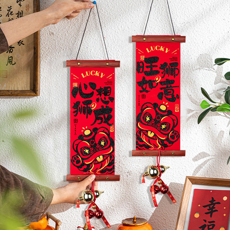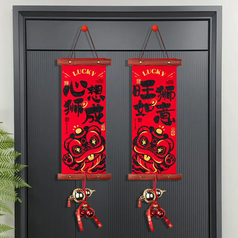 岚树2026新款室内小区入户门绒布醒狮挂饰玄关客厅新年背景墙装饰