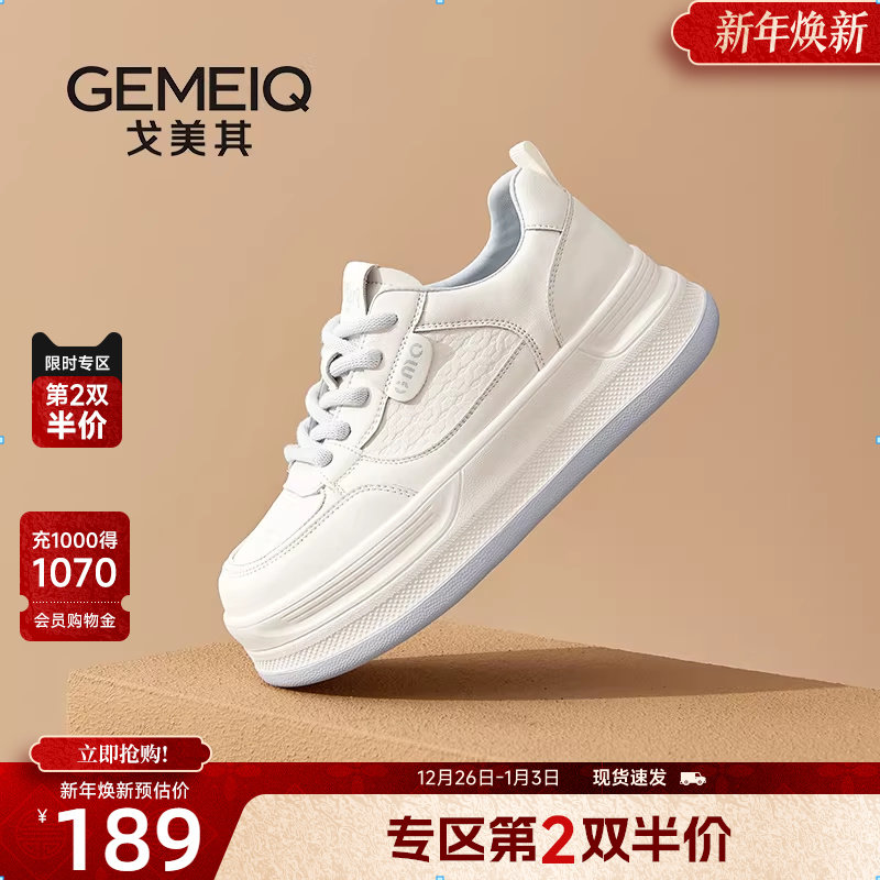 戈美其商场同款厚底小白鞋女2025冬季新款百搭爆款增高休闲运动鞋