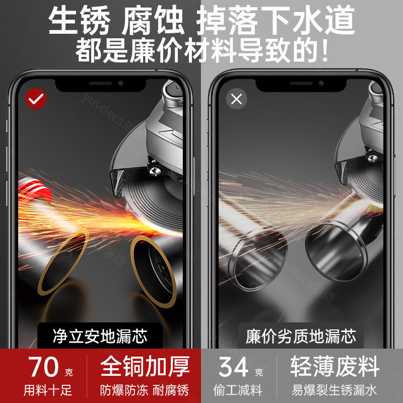 厨房卫浴淋浴地漏芯黄铜加厚弹跳防臭下水芯防堵防返水下水神器