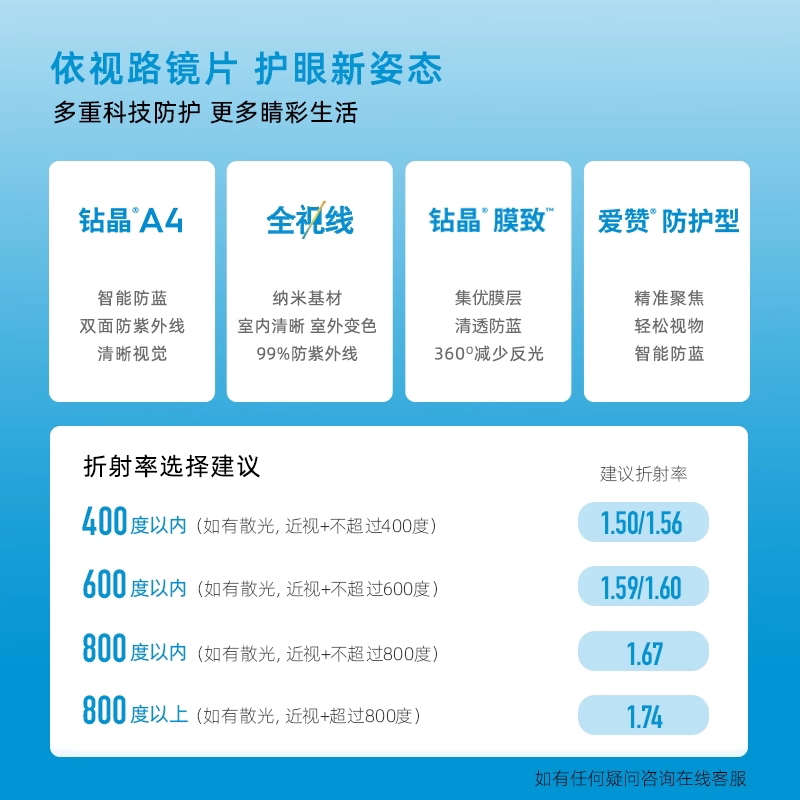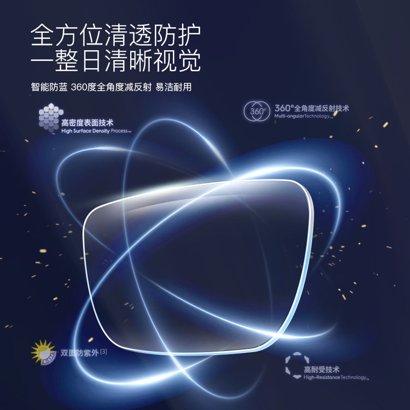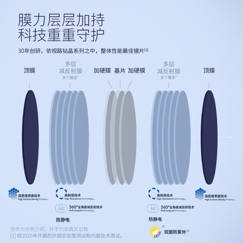 依视路近视眼镜防紫外线蓝光减反射易洁非球面钻晶膜致现片2片