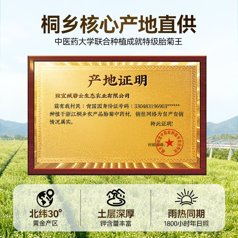桐乡原产头茬10A+特级胎菊王杭白菊花清热下火正品旗舰店