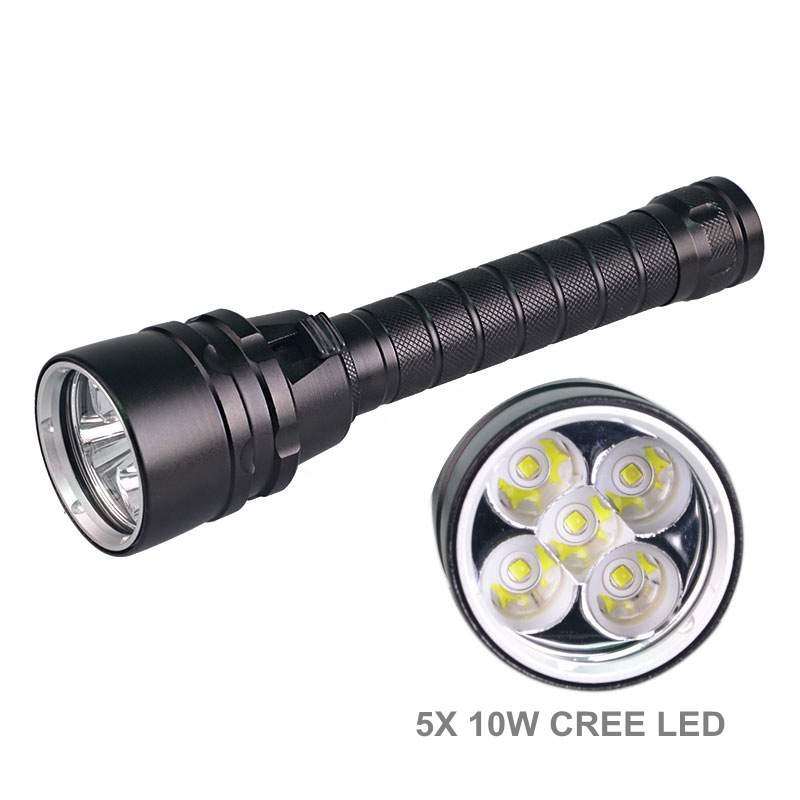 跨境5灯珠T6户外强光远射手电筒潜水专用IP68防水高流明led潜水灯