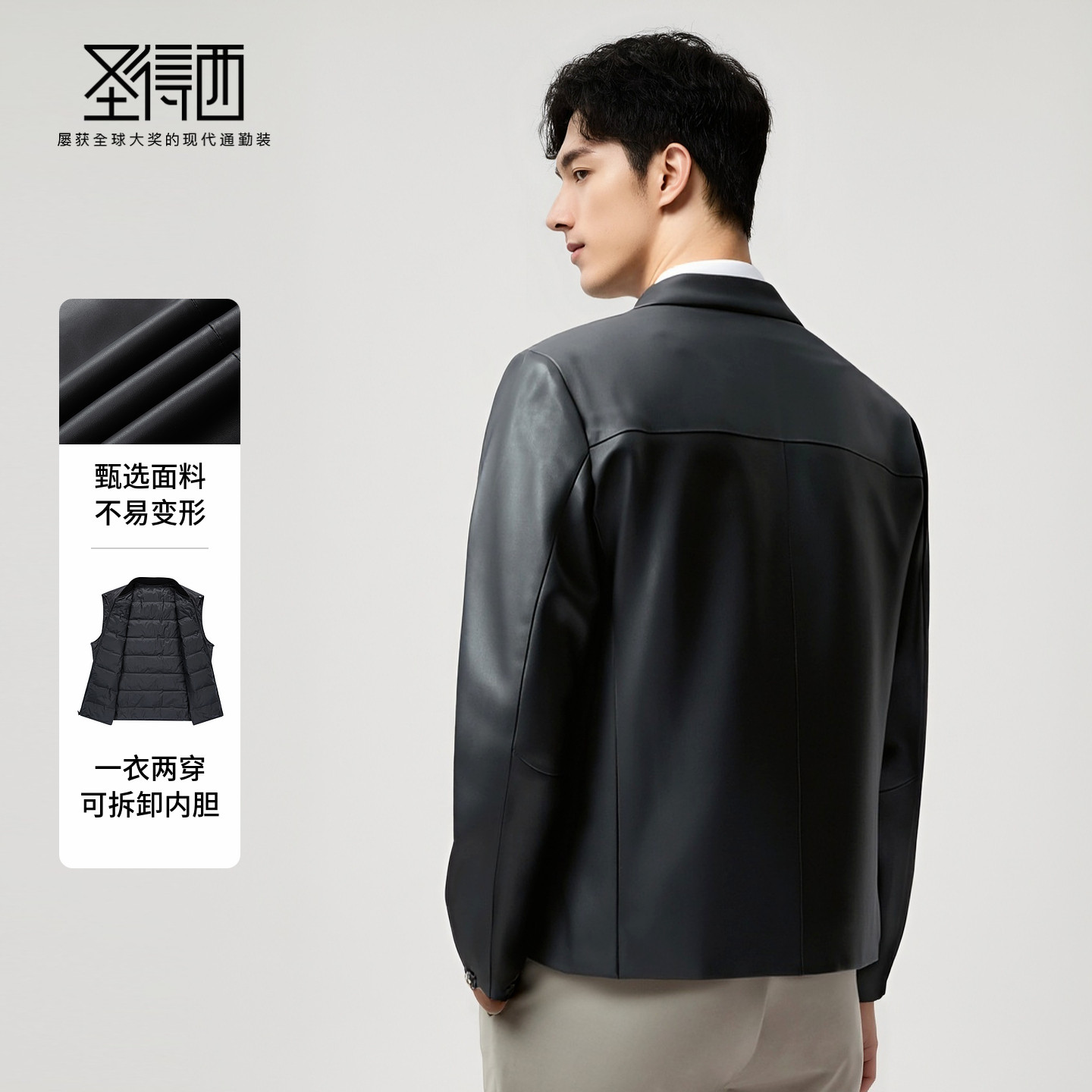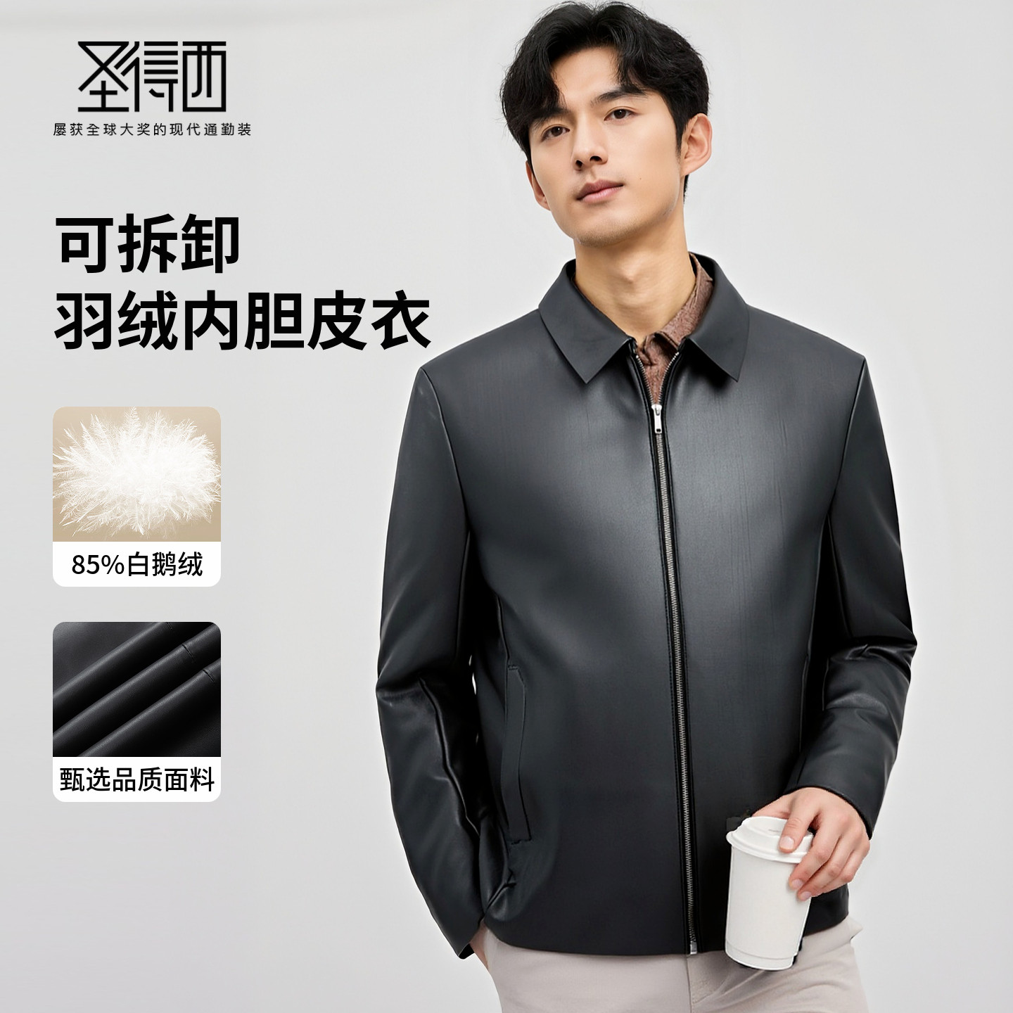 【真羊皮&85%白鹅绒】圣得西25秋冬新款可拆卸羽绒内胆保暖皮衣男