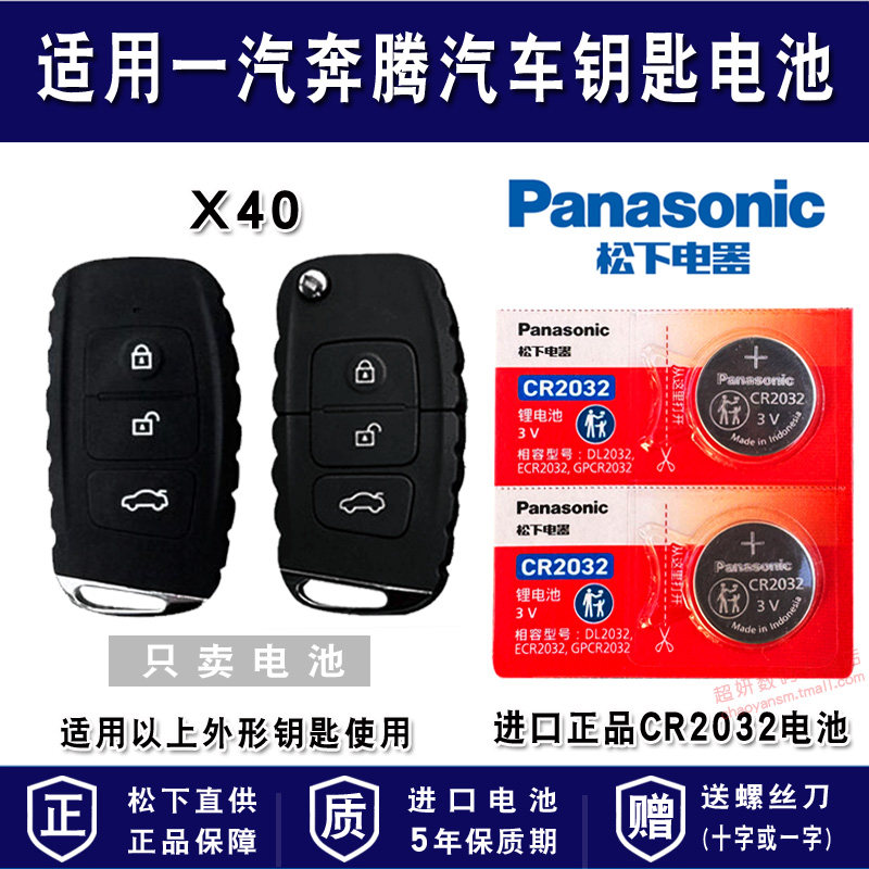 适用奔腾X40汽车钥匙电池进口遥控器纽扣电子松下智能锁匙配件3V一键启动20新款换21年 2017款2018年2019