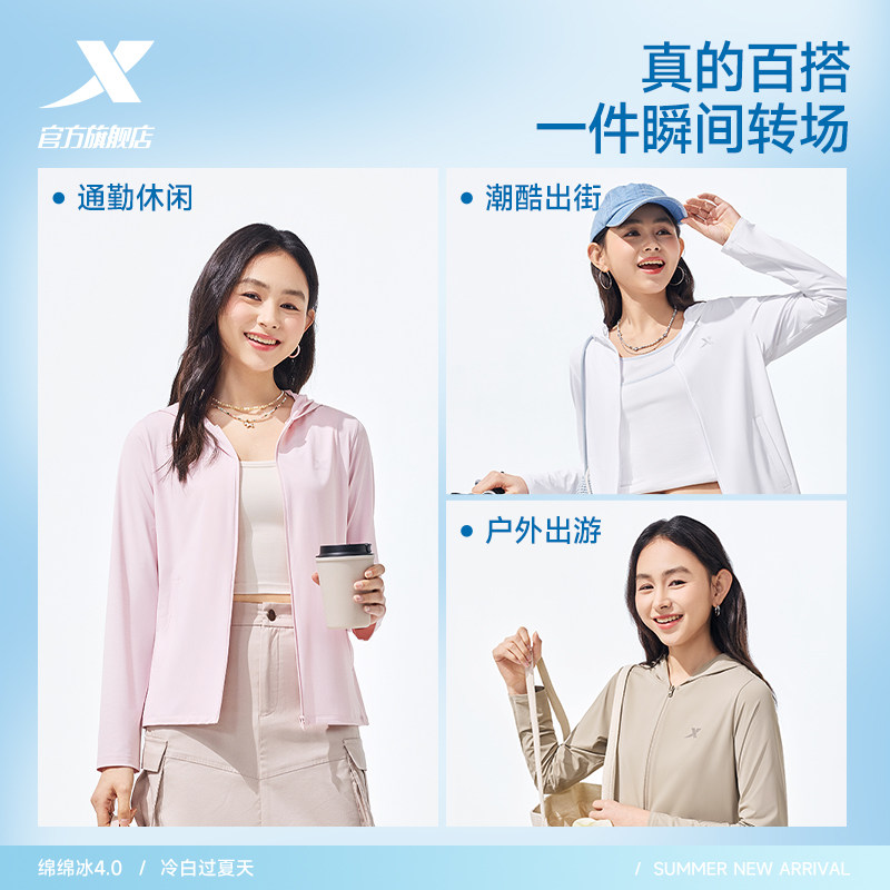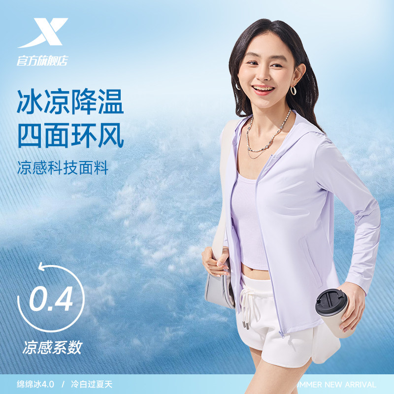 特步绵绵冰4.0防晒衣女款春夏季新款轻薄冰丝防晒服户外皮肤衣
