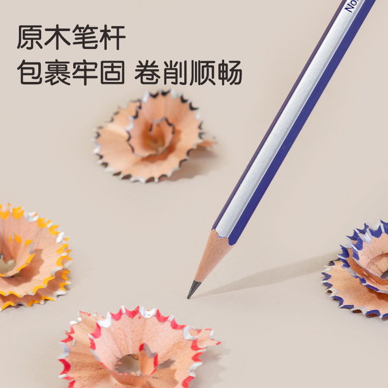 Nusign纽赛星际银圆杆黑木铅笔小学生专用一二年级含笔帽无铅毒高颜值小银杆2bHB考试幼儿园写字练字绘画安全
