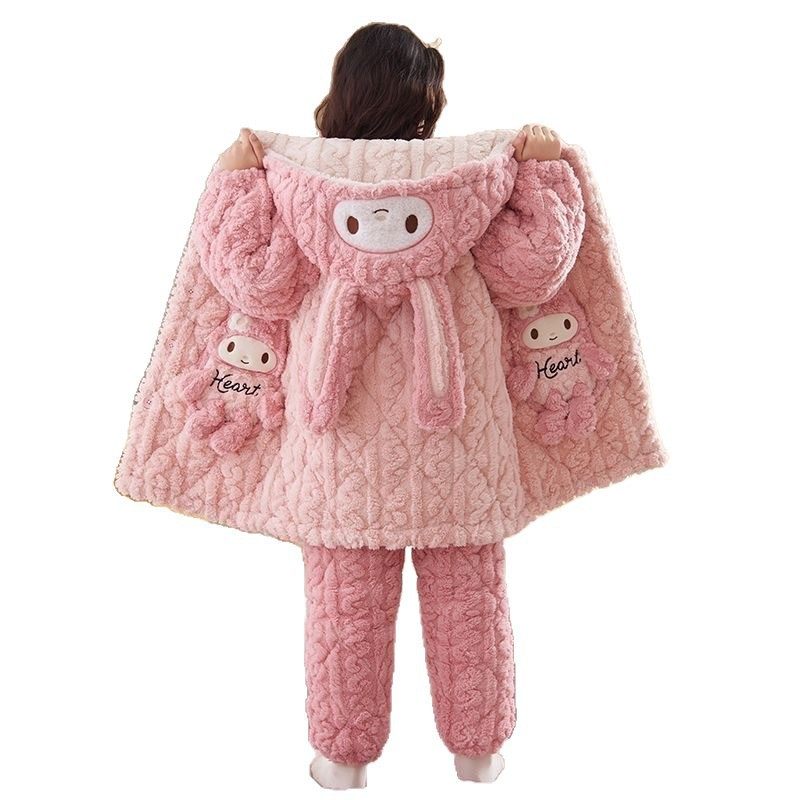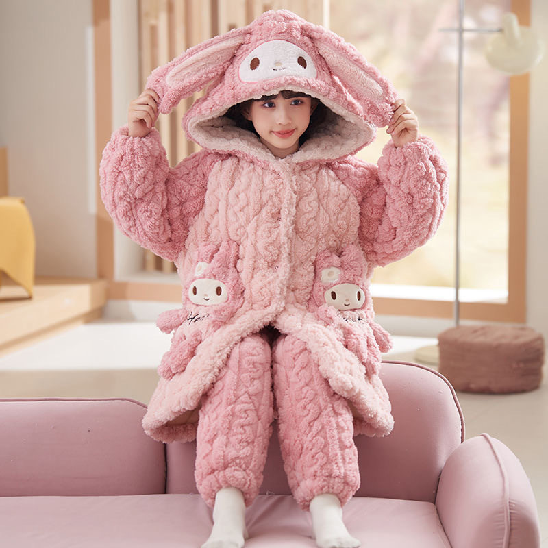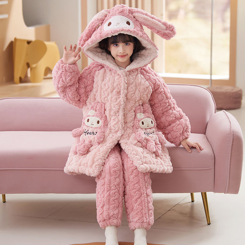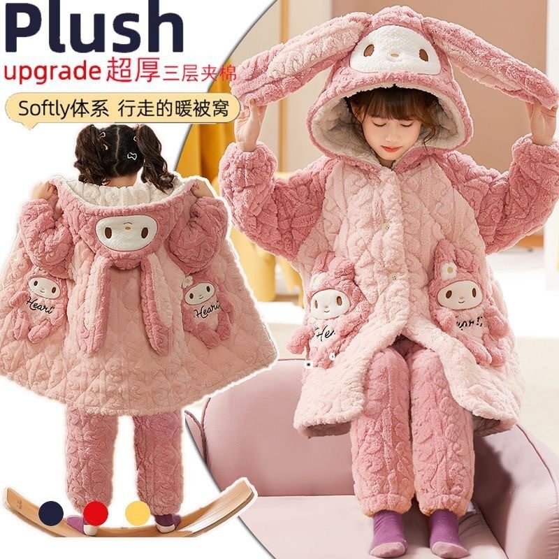 儿童睡袍女童浴袍睡衣珊瑚绒秋冬三层加绒加厚家居服长款女孩睡衣