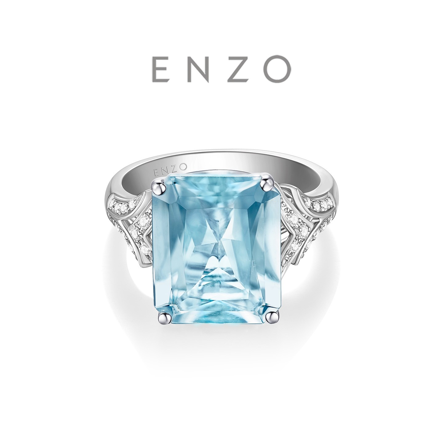 新款ENZO「经典彩宝」18K金海蓝宝石钻石戒指女EZV6871新年礼物