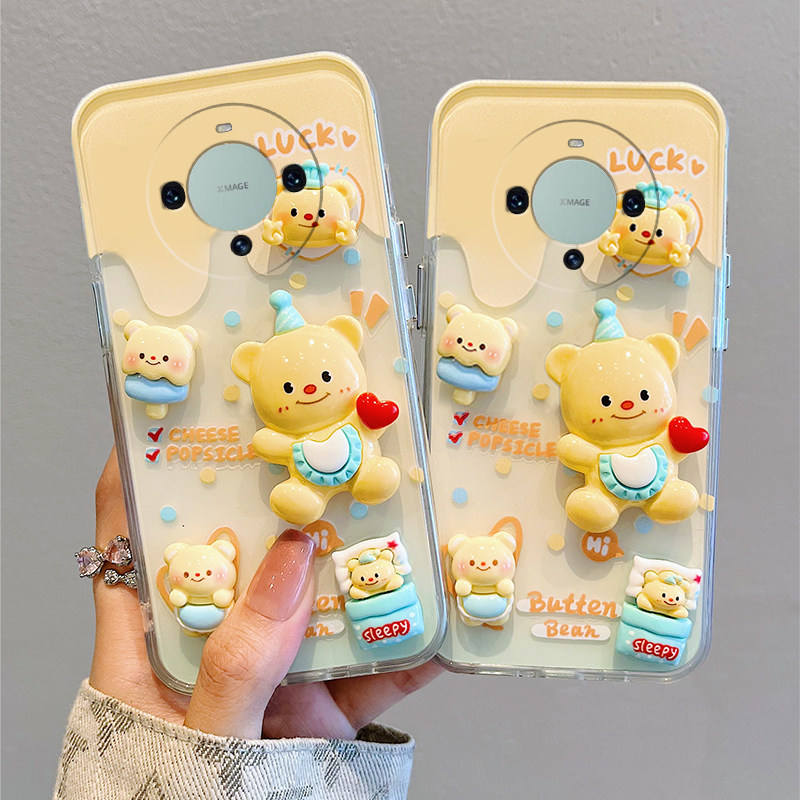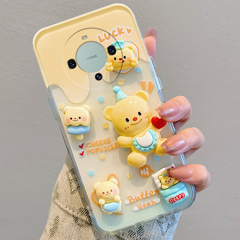 可爱黄油小熊适用华为mate60pro手机壳mata50e立体rs保时捷设计mete40e+十meta30公仔20x卡通10少女心9硅胶女