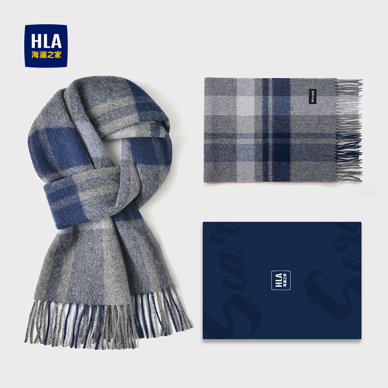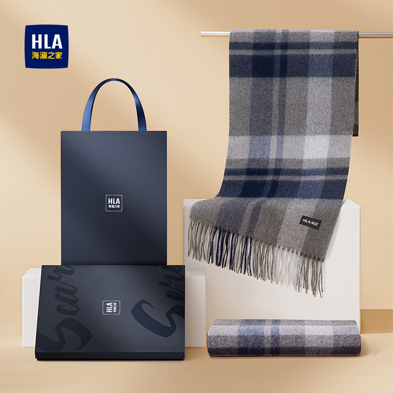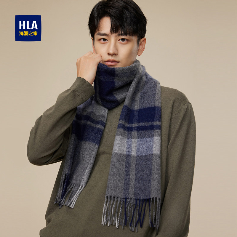 海澜之家绵羊毛围巾男士2025新款秋冬保暖户外骑行防寒英伦风围脖