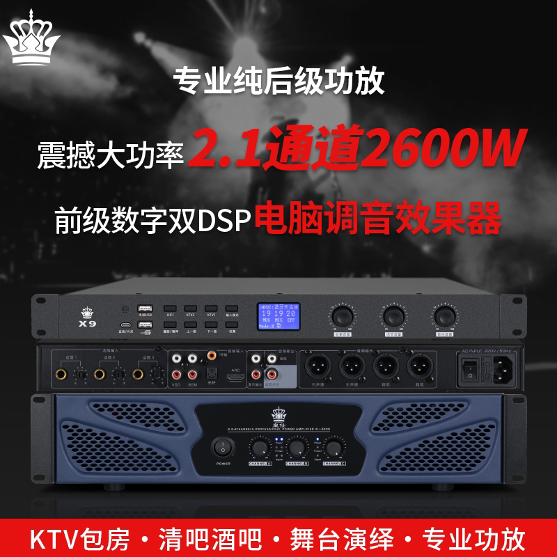 皇仕专业大功率家用蓝牙功放机卡拉OK防啸叫功放HiFi重低音放大器