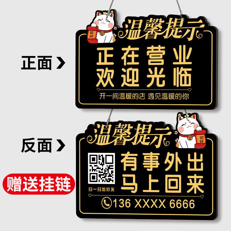 有事外出挂牌门店临时有事店主外出送货出去一下马上回来提示牌有事请拨打电话牌子正在营业中休息中告示牌