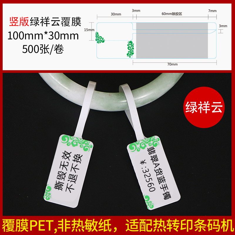 覆膜手镯珠宝标签纸加长尾巴吊牌手表表带奢饰品包包价格防水翡翠玉石茶壶挂件摆件标价标识商品价格标签珠宝