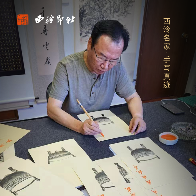 西泠印社倪郡阳手写题字书法作品古鼎全形拓手工拓片进口实木镜框书房挂件桌面摆件装饰书法画框收藏送礼自用
