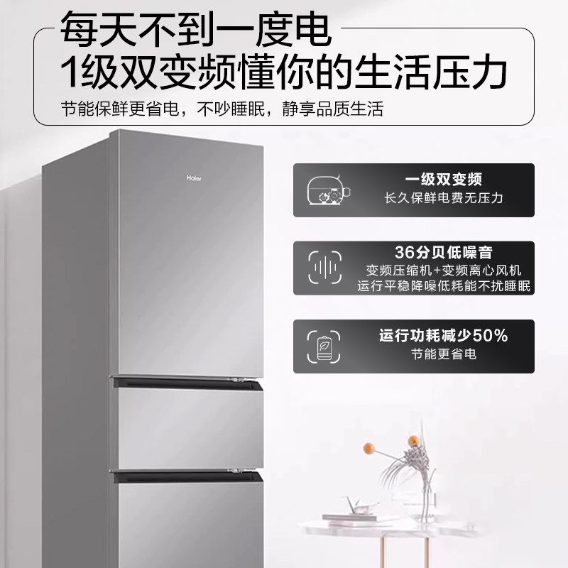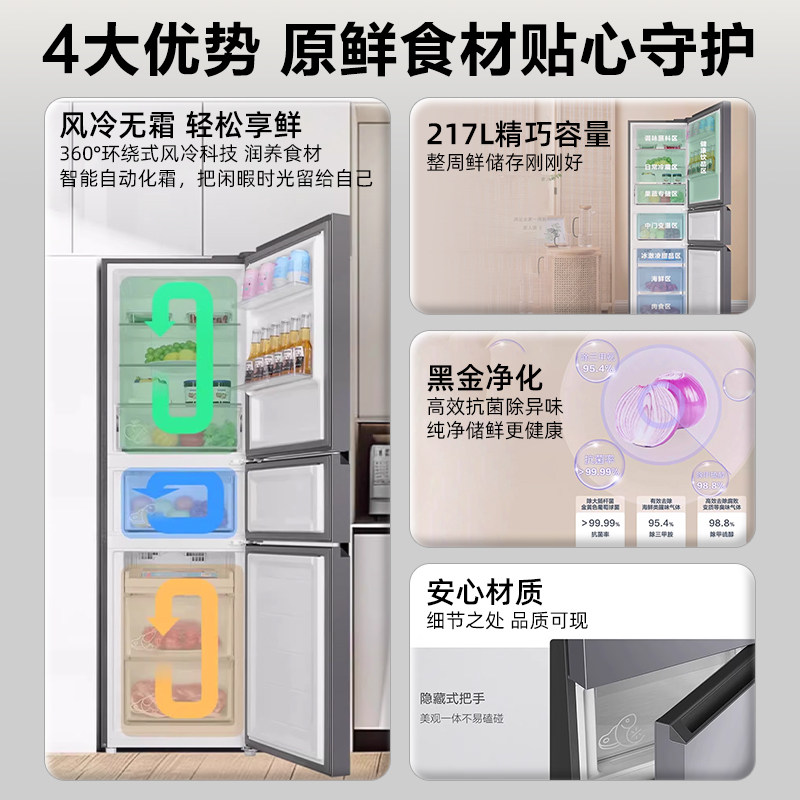 [一级能效]海尔电冰箱217L升风冷无霜家用小型三开门官方旗舰店
