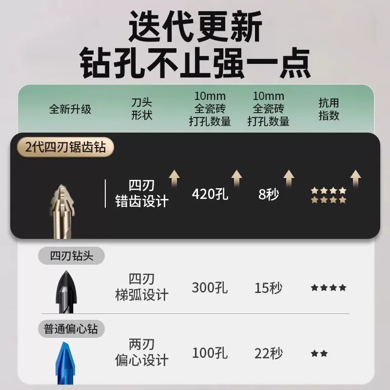 四刃锯齿偏心钻头瓷砖打孔混凝土专用电钻高硬度干打霸王钻孔开孔