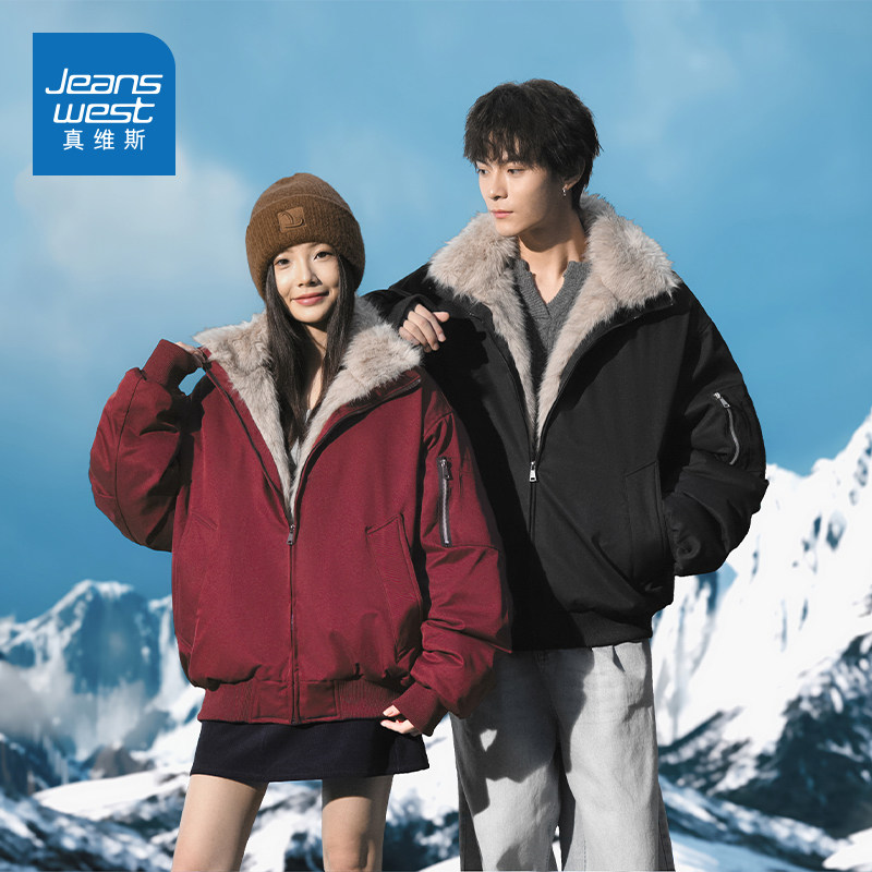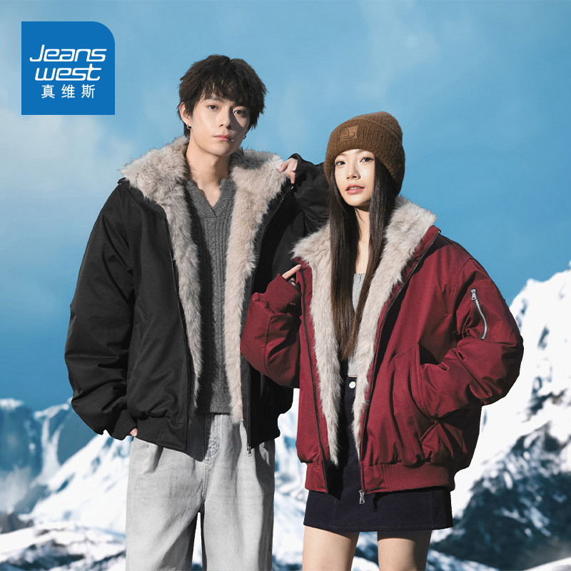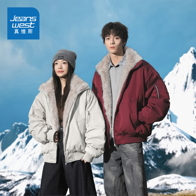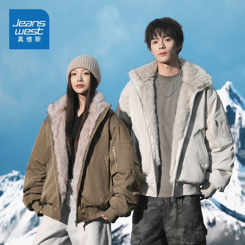 N5真维斯棉服男款2025新款冬季潮流毛领棉袄加厚保暖棉衣冬装外套