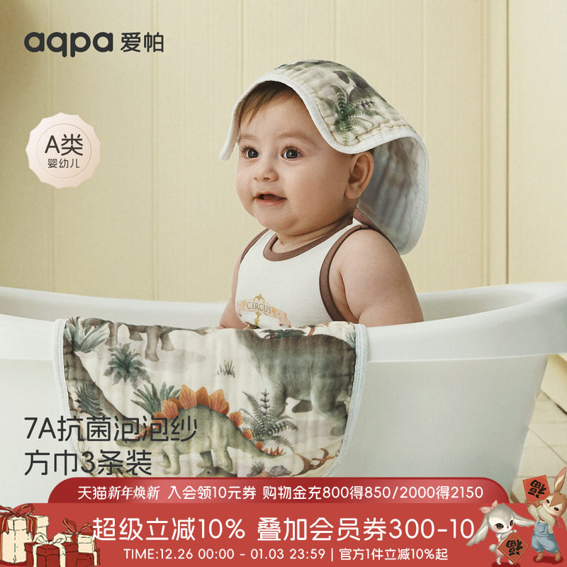 [重返侏罗纪]aqpa口水巾婴儿新生纱布小方巾宝宝毛巾儿童洗脸巾萌