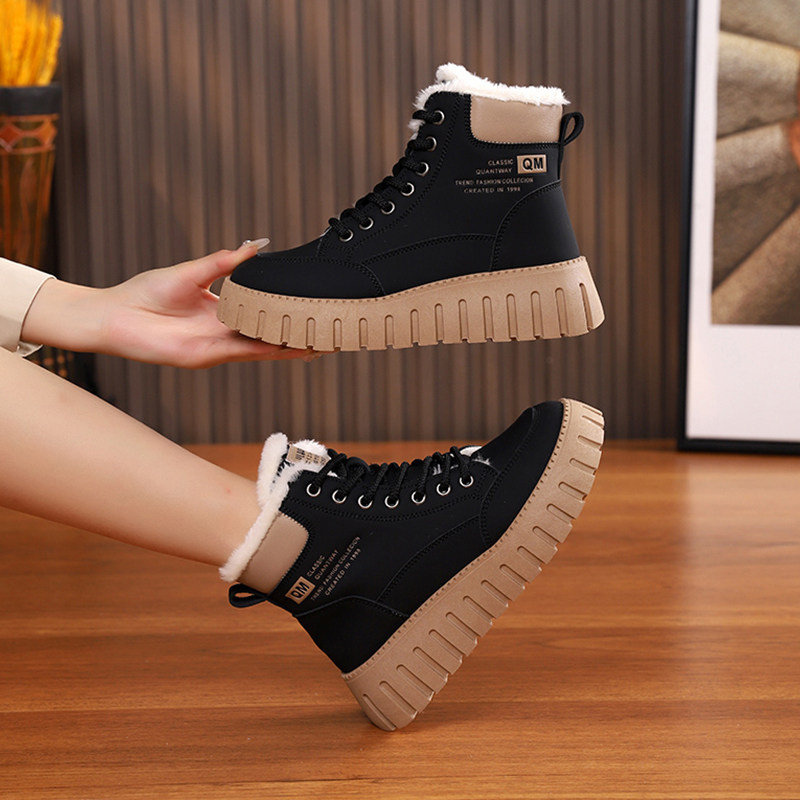 人本厚底雪地靴女款2025新款冬季女鞋东北加绒加厚保暖增高棉鞋