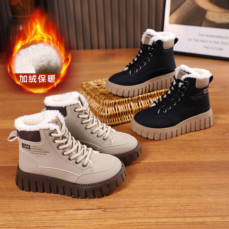 骆驼雪地靴女鞋2025冬季新款加绒保暖棉鞋女加厚东北厚底增高短靴