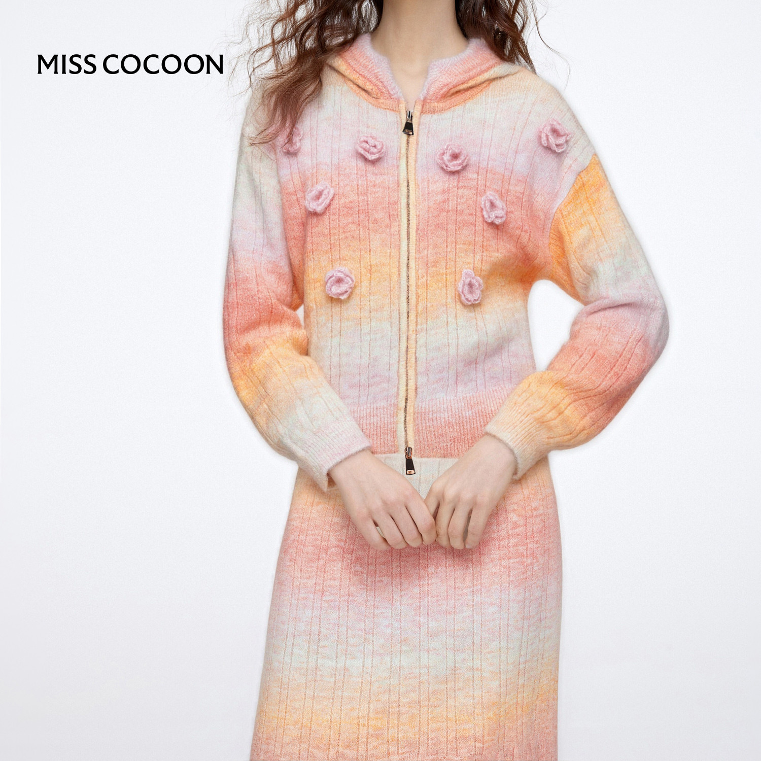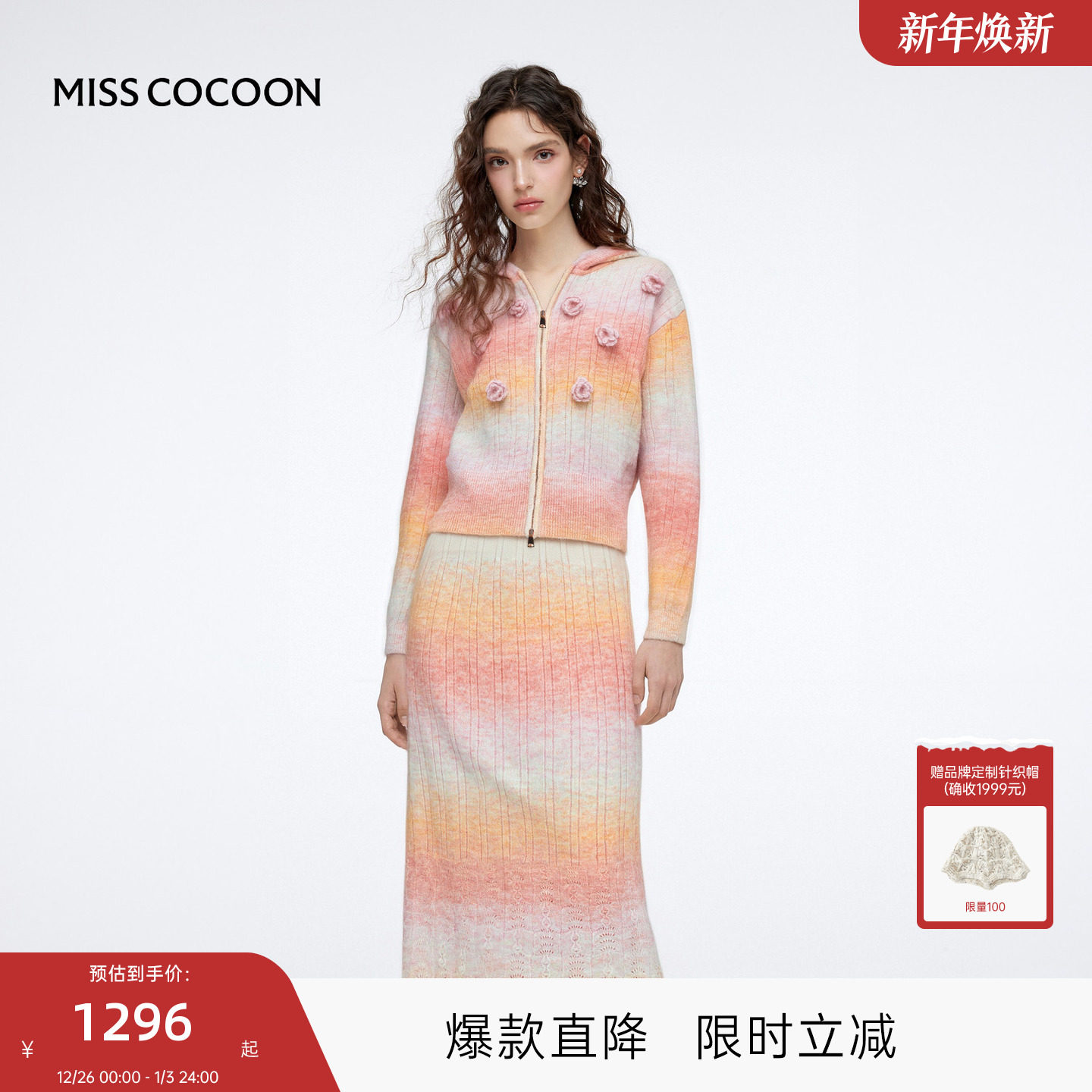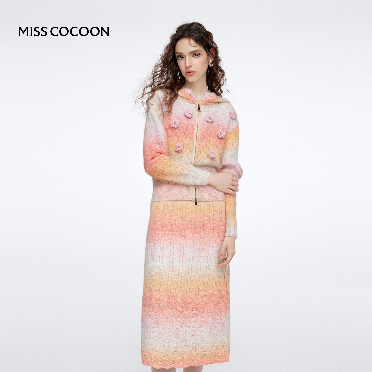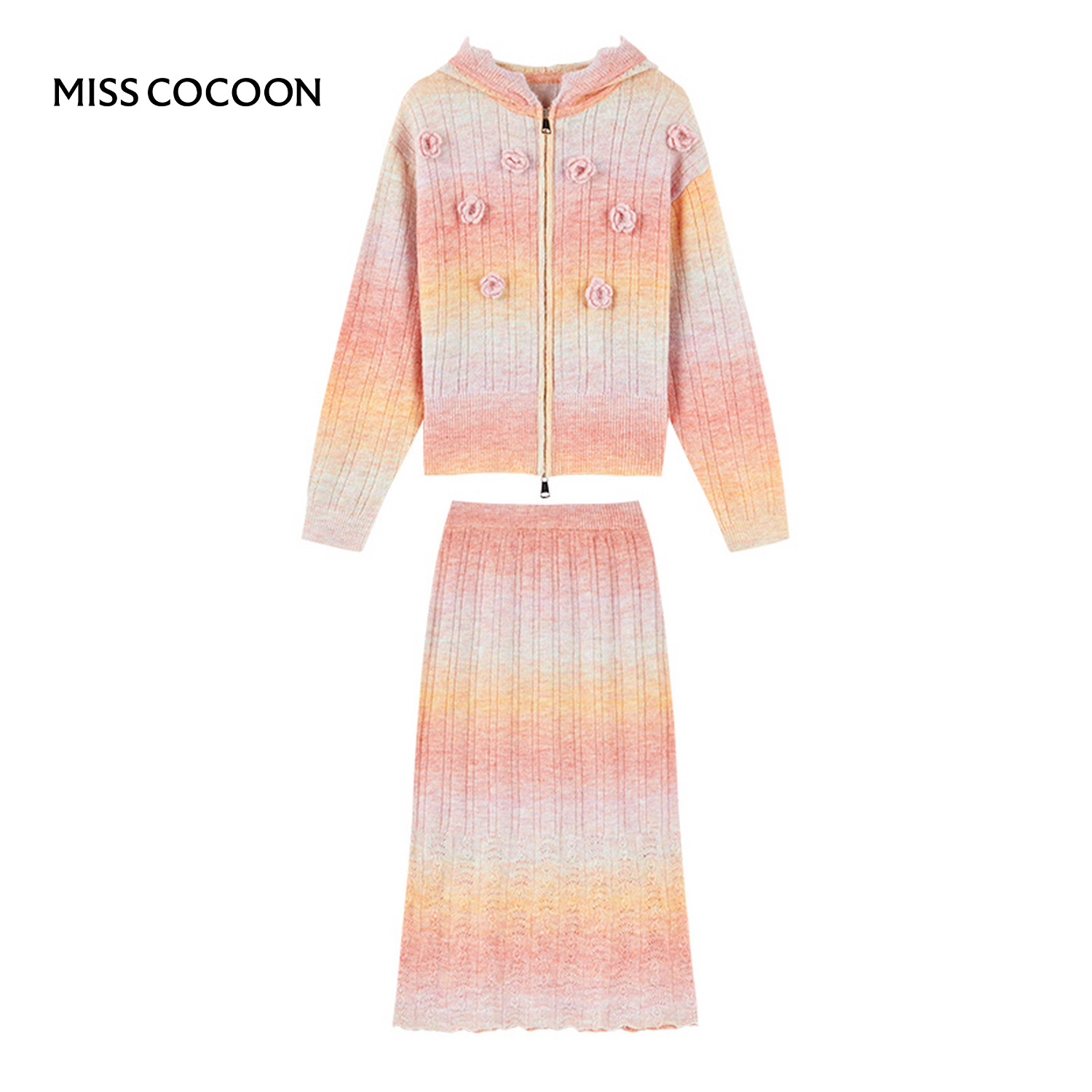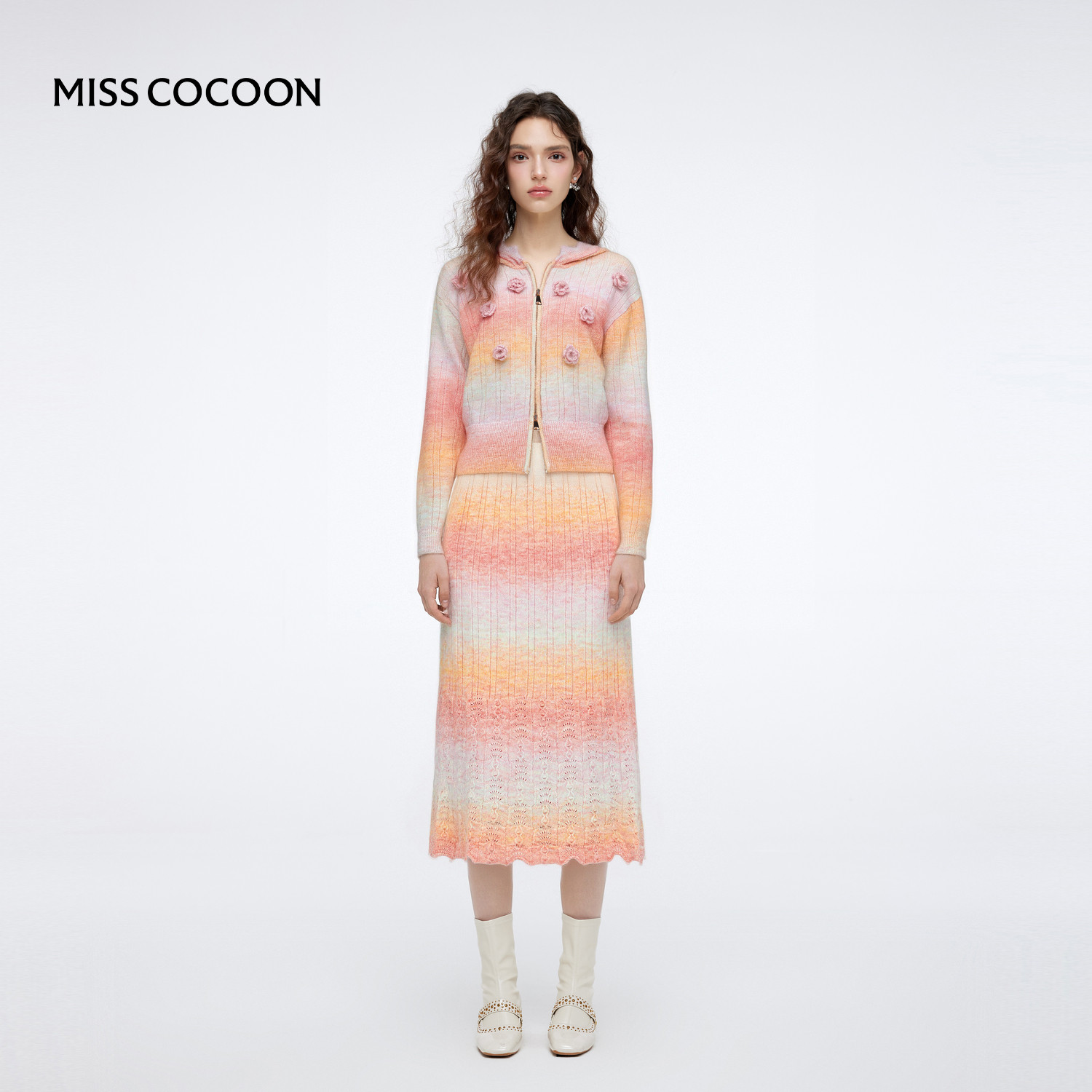 MISSSCOCOON可可尼鱼尾半身裙女2025秋冬新款多巴胺连帽针织套装