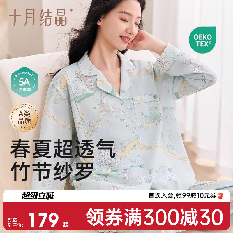 十月结晶纱罗月子服孕妇睡衣家居服产后坐月子抗菌轻薄透气冬季款