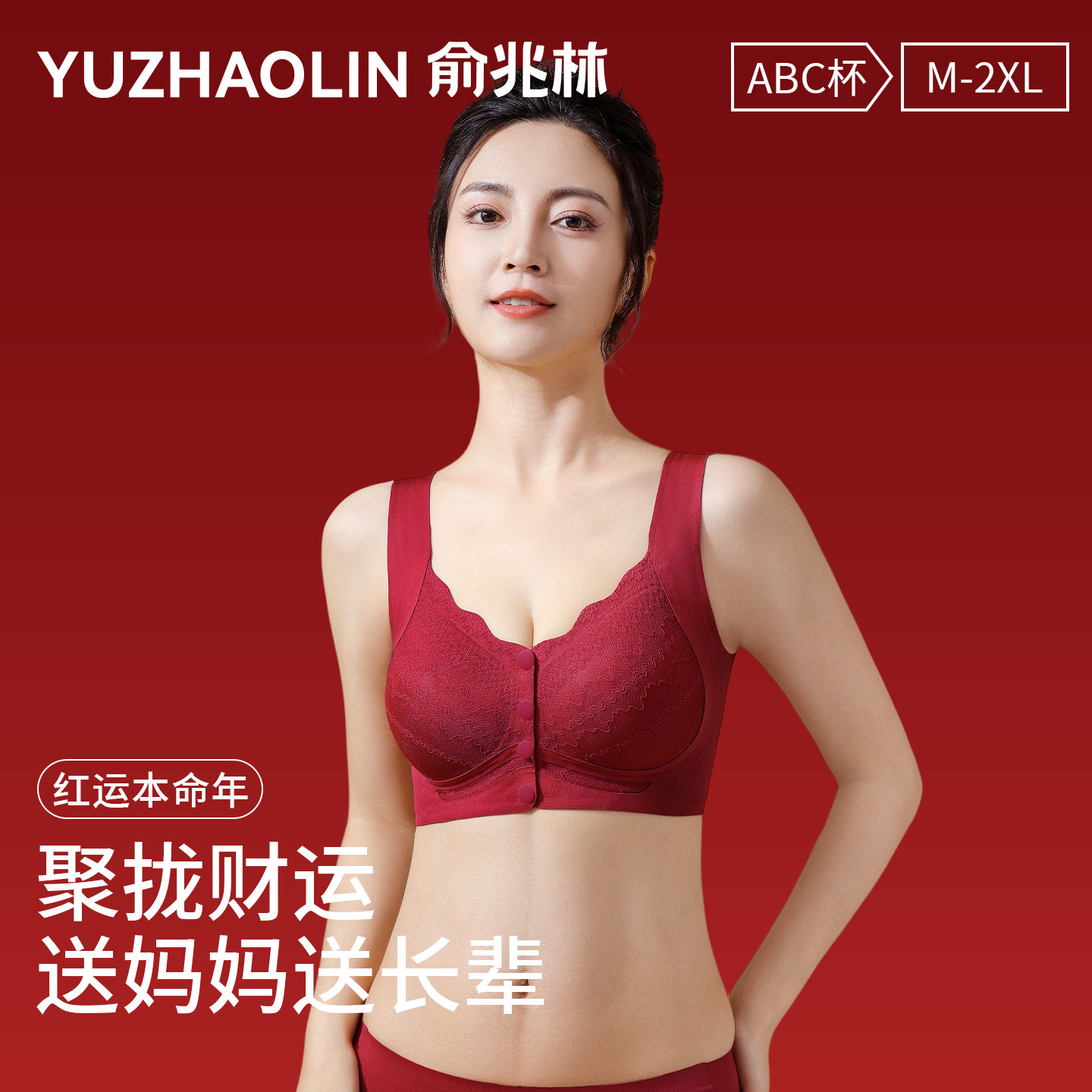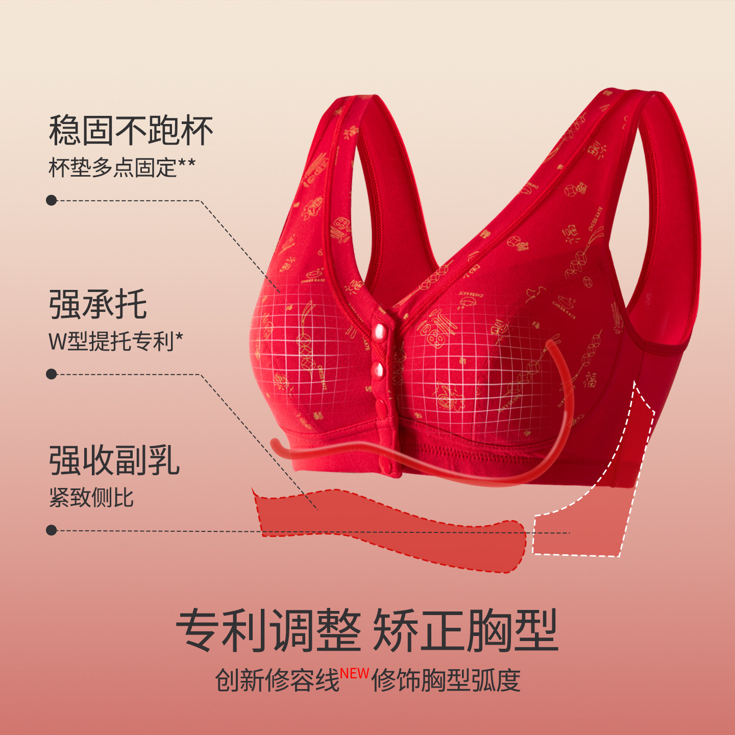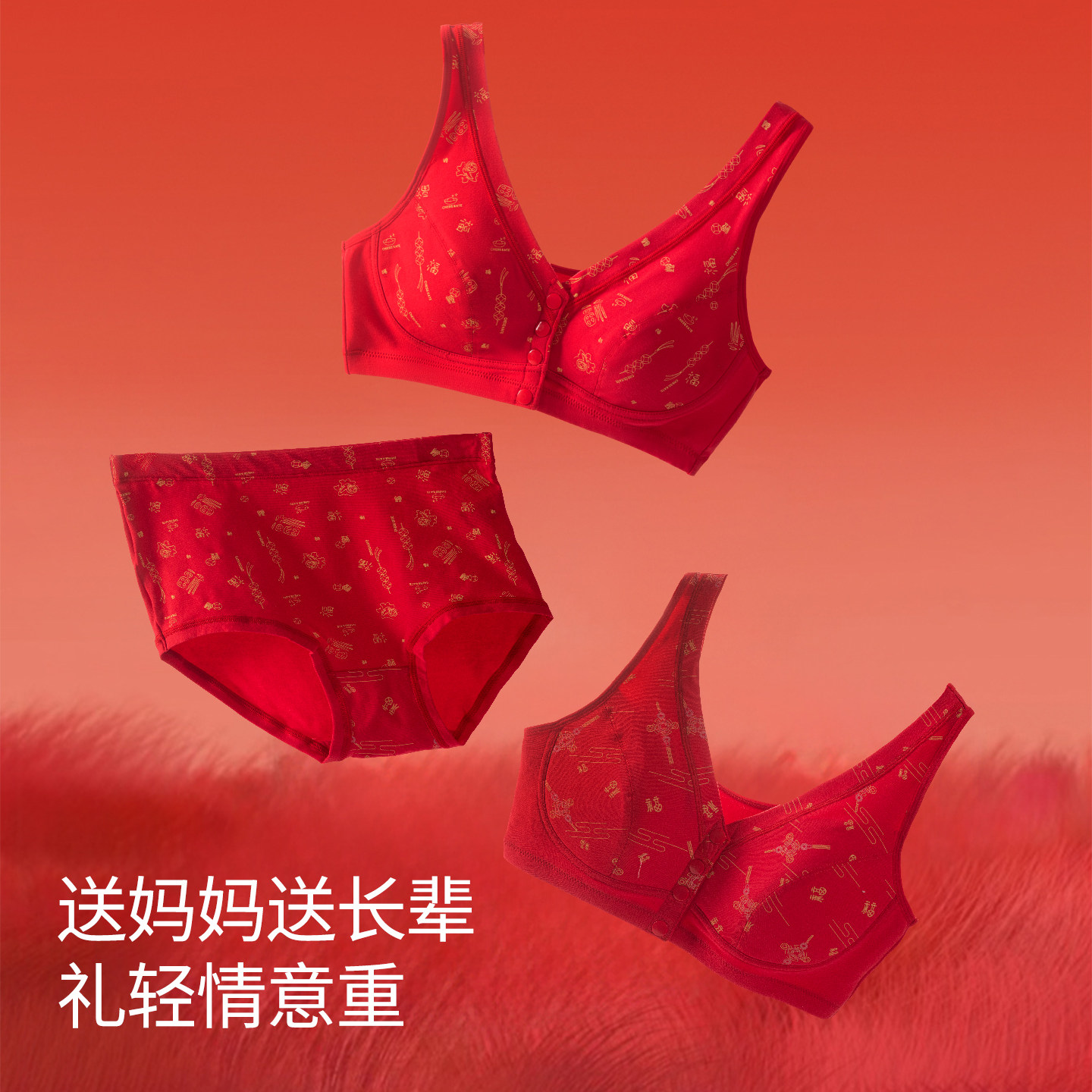 妈妈本命年内衣套装女红色前扣式中老年人专用大码文胸罩2026马年