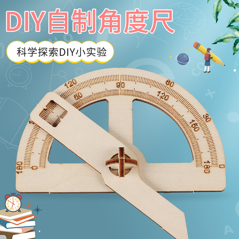 diy学生儿童科技小制作小发明万能角度尺圆角尺拼装材料科普玩具