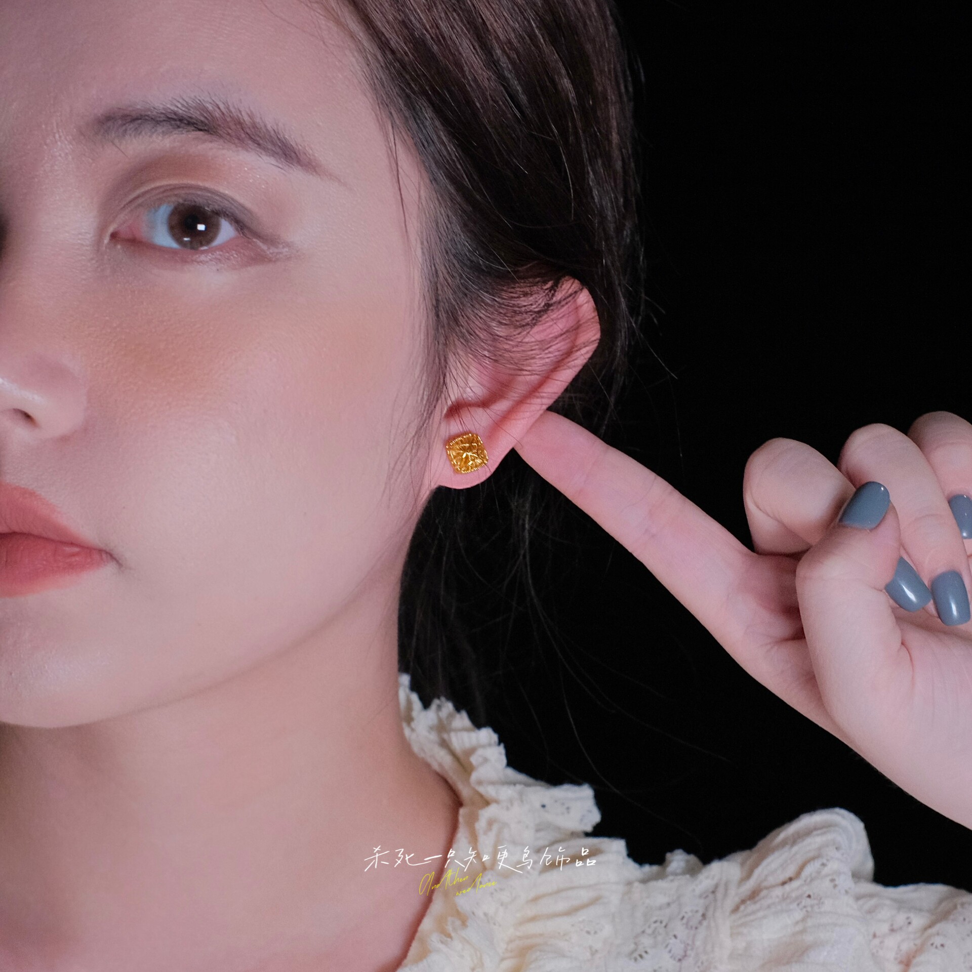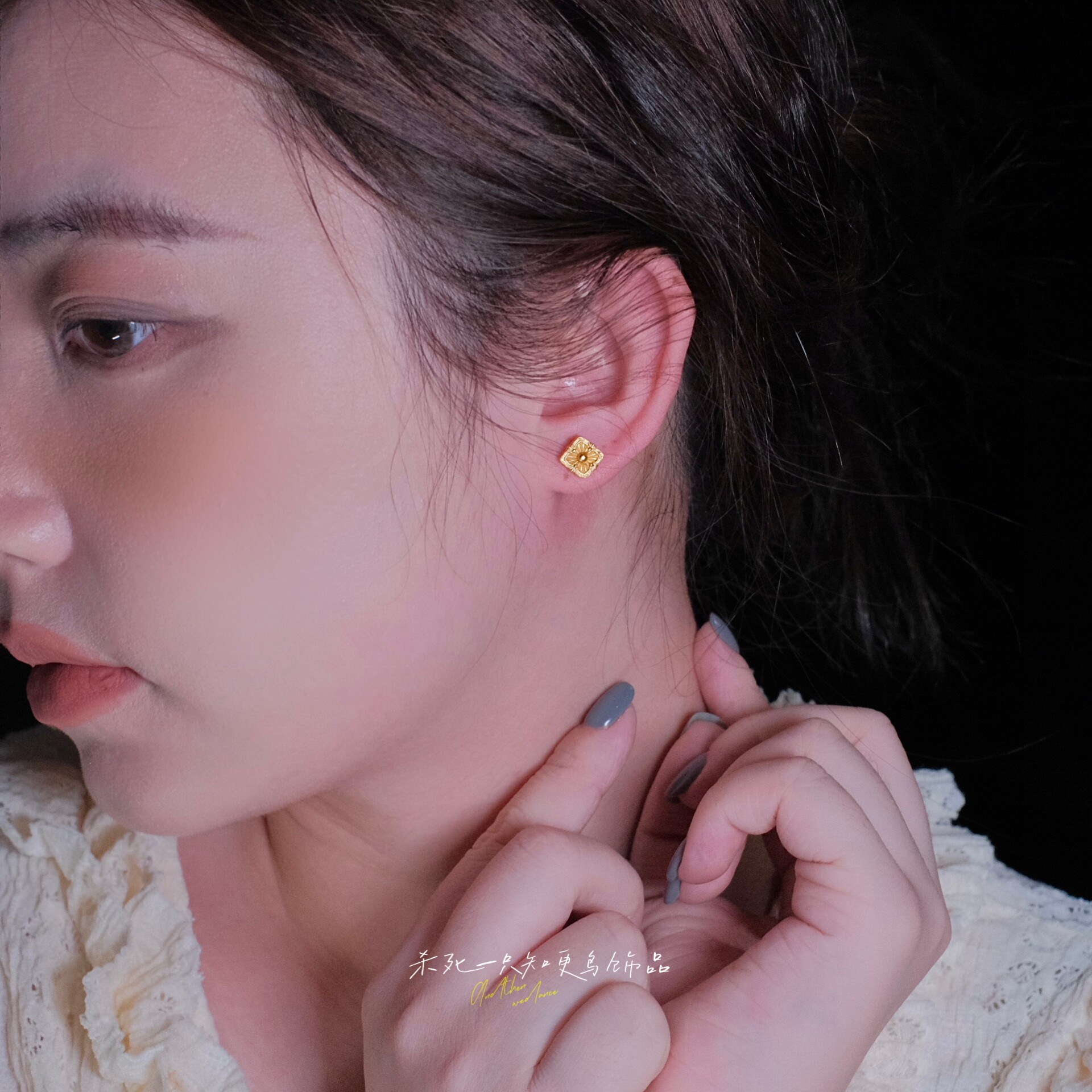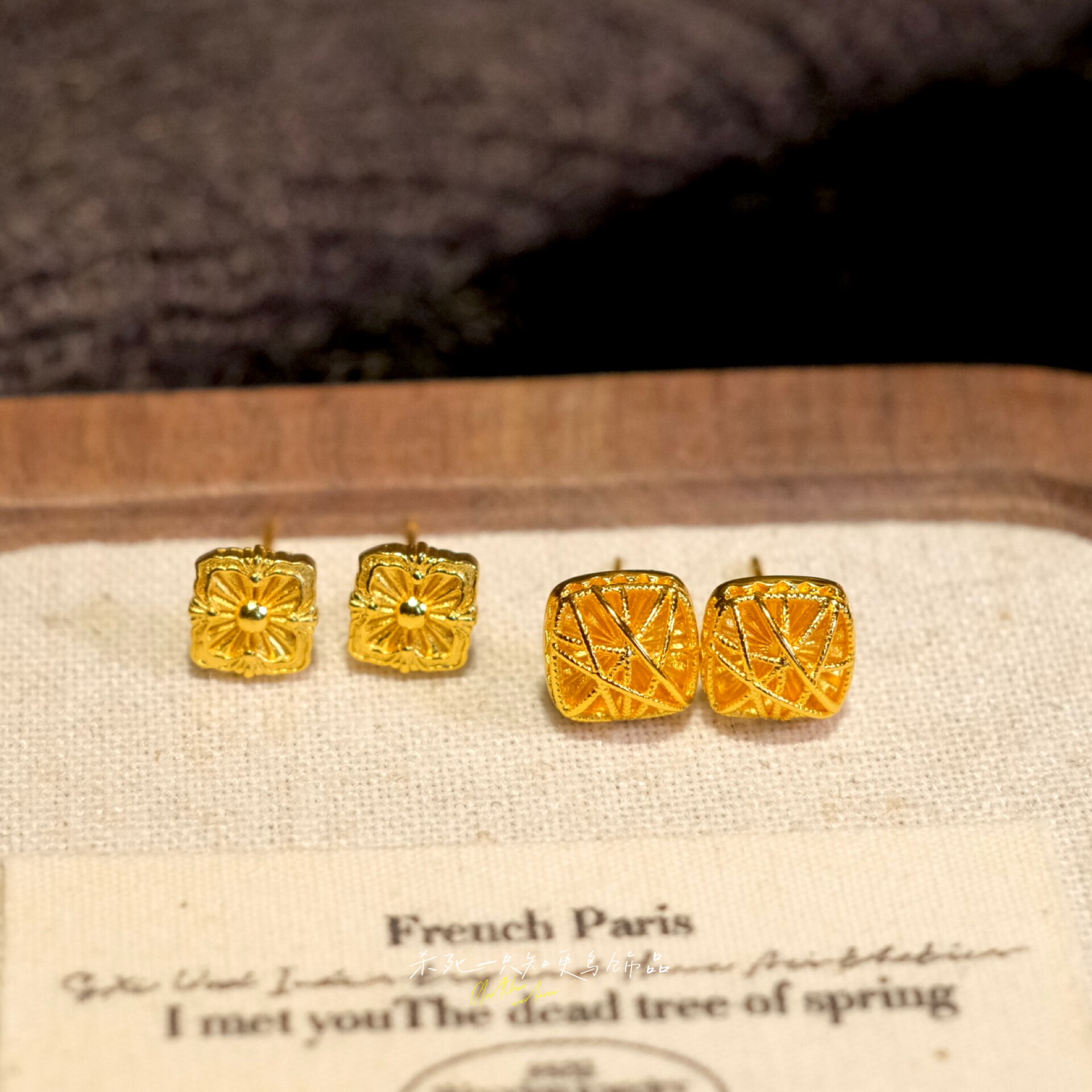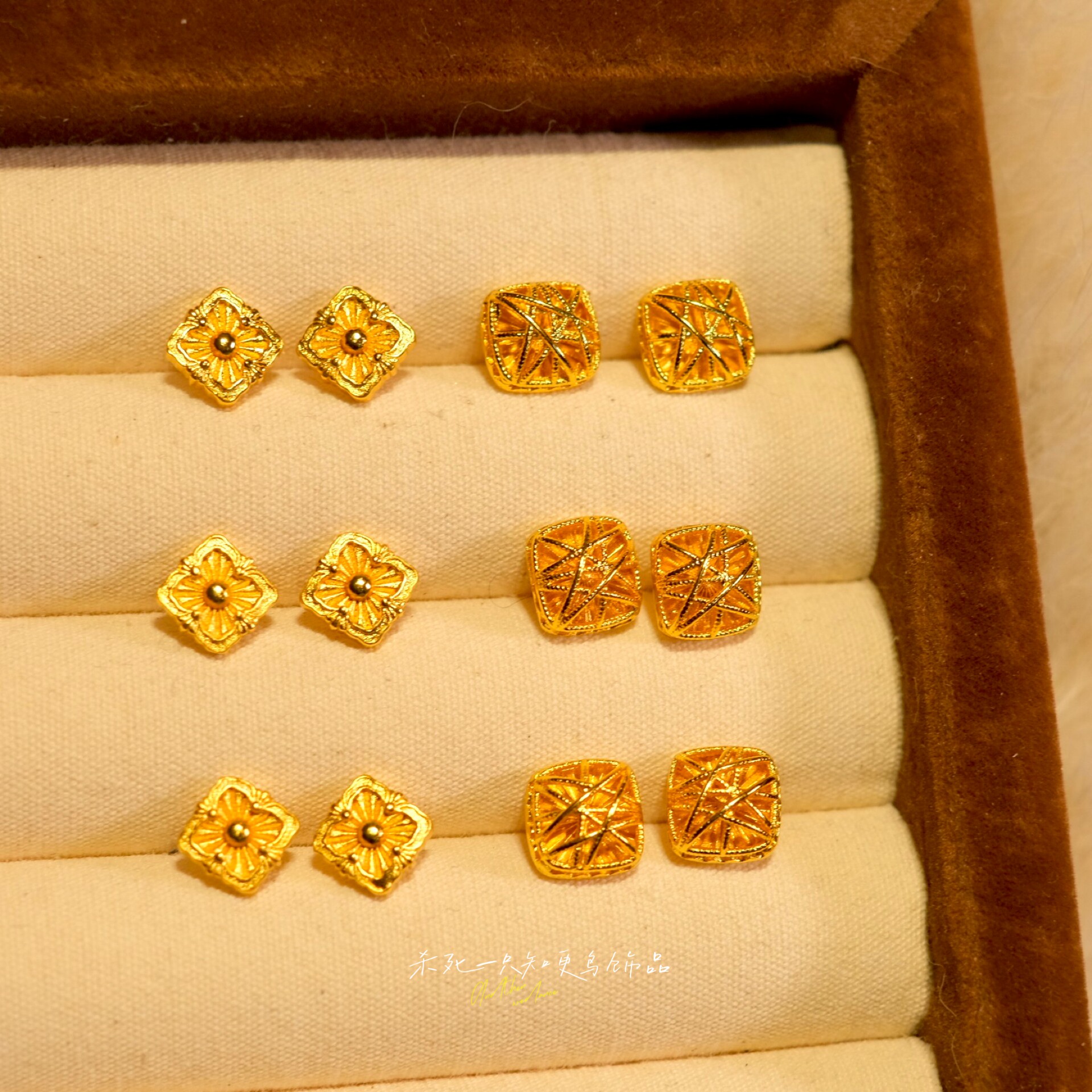 知更鸟丨精致轻奢小巧金店同款镂空雕花拉丝沙金方糖耳钉耳环耳饰