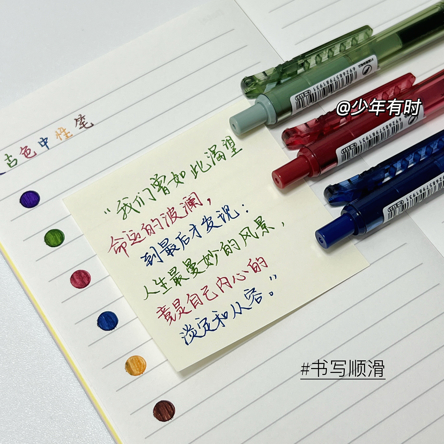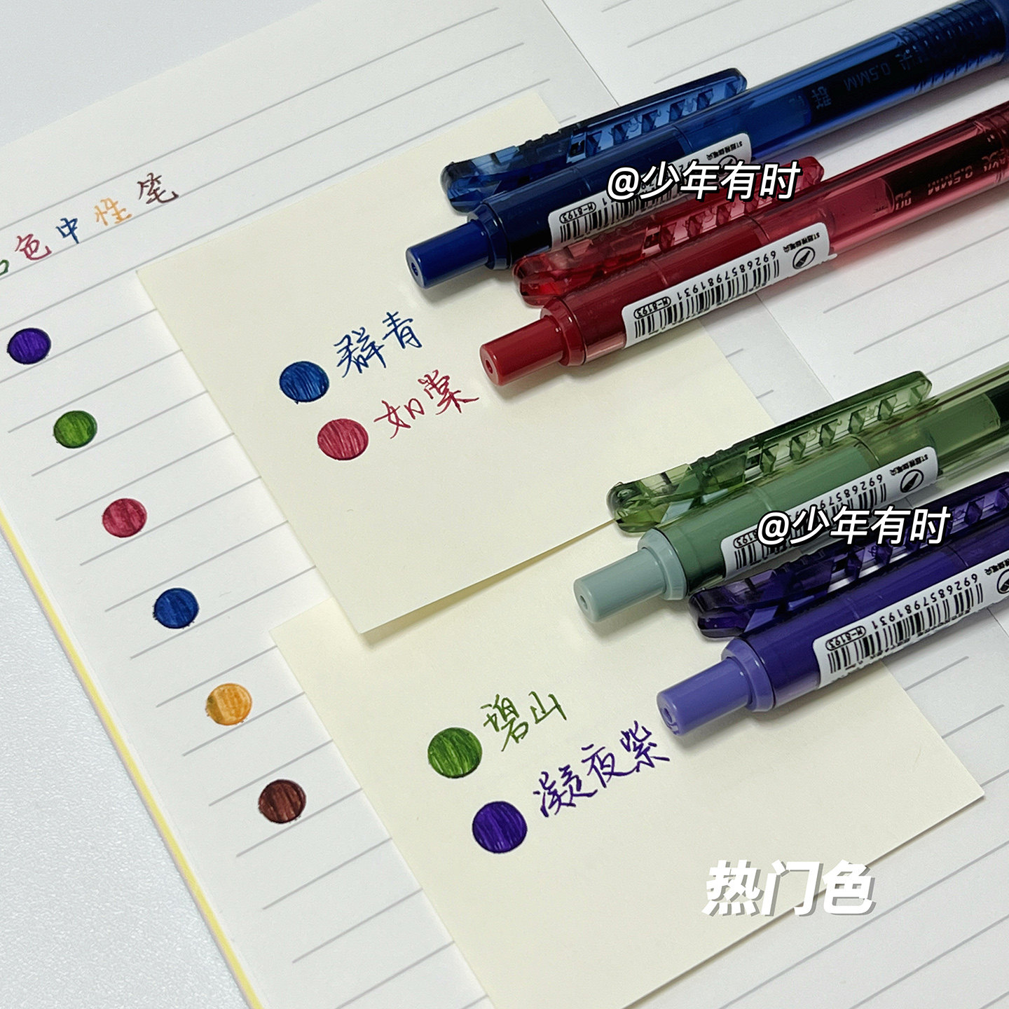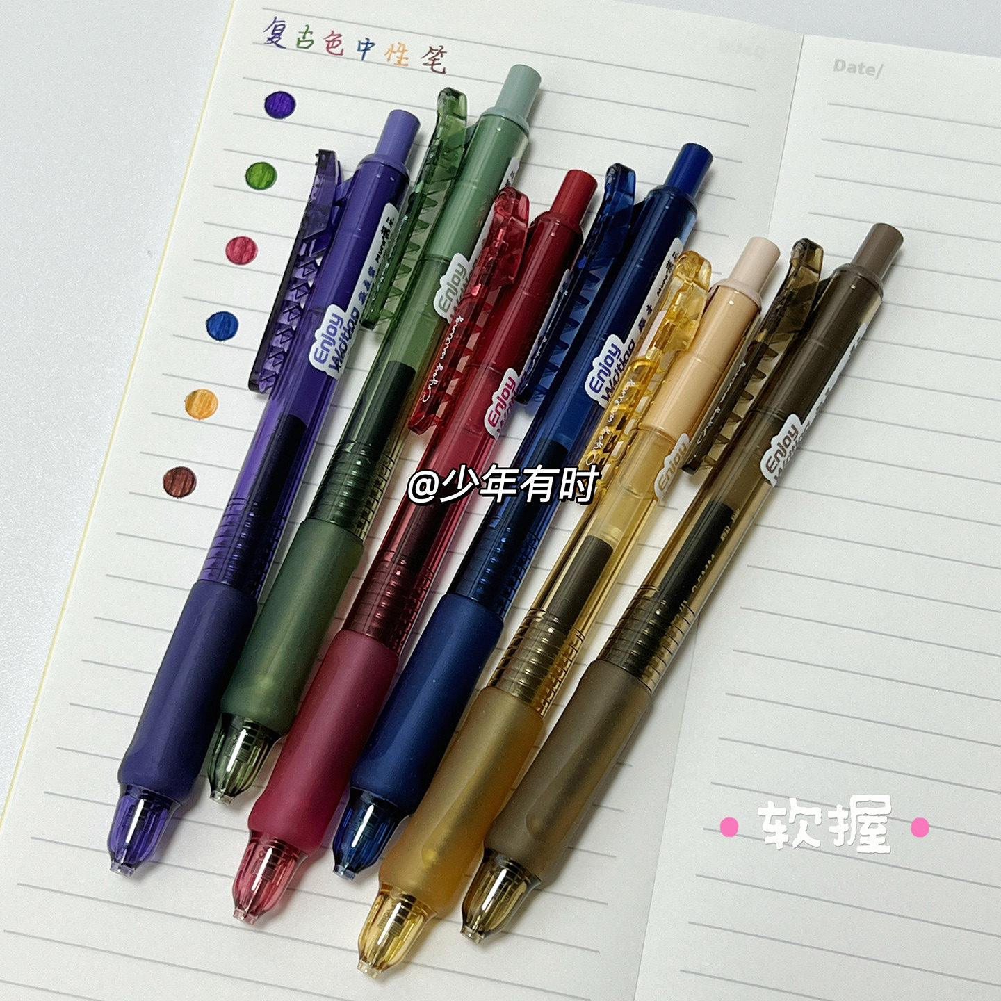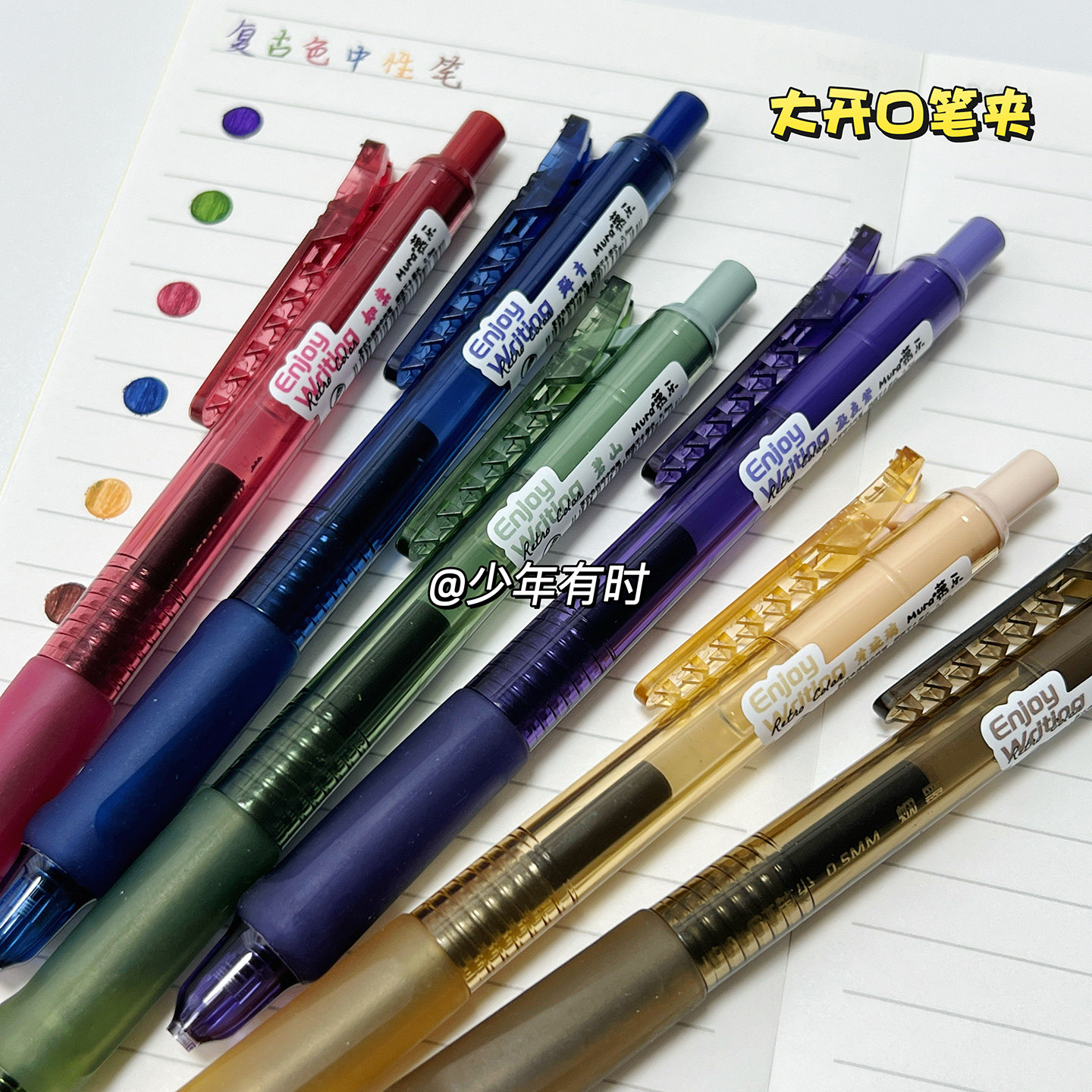 慕乐8193复古色软握按动中性笔学生做手帐笔记热门色ST头彩笔套装