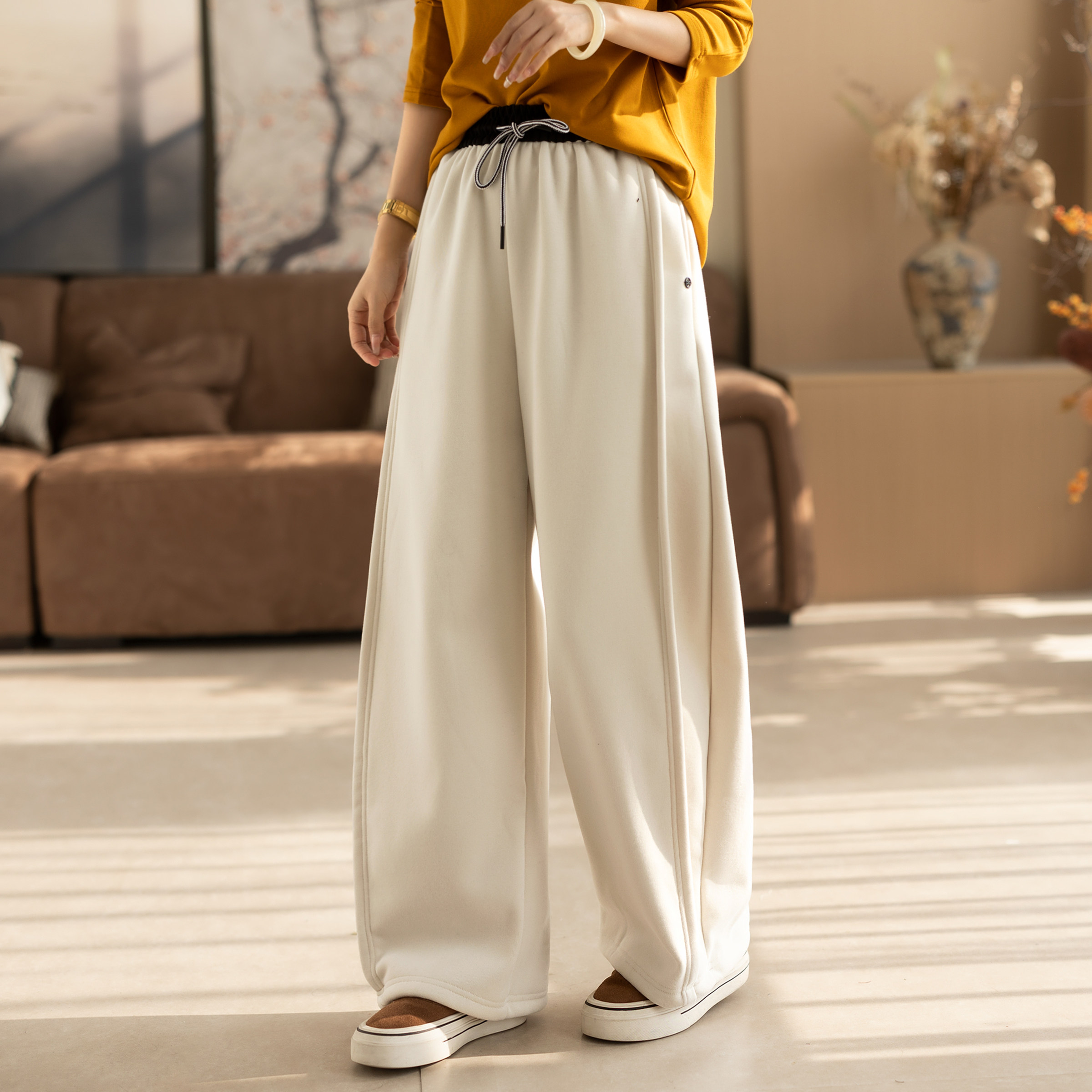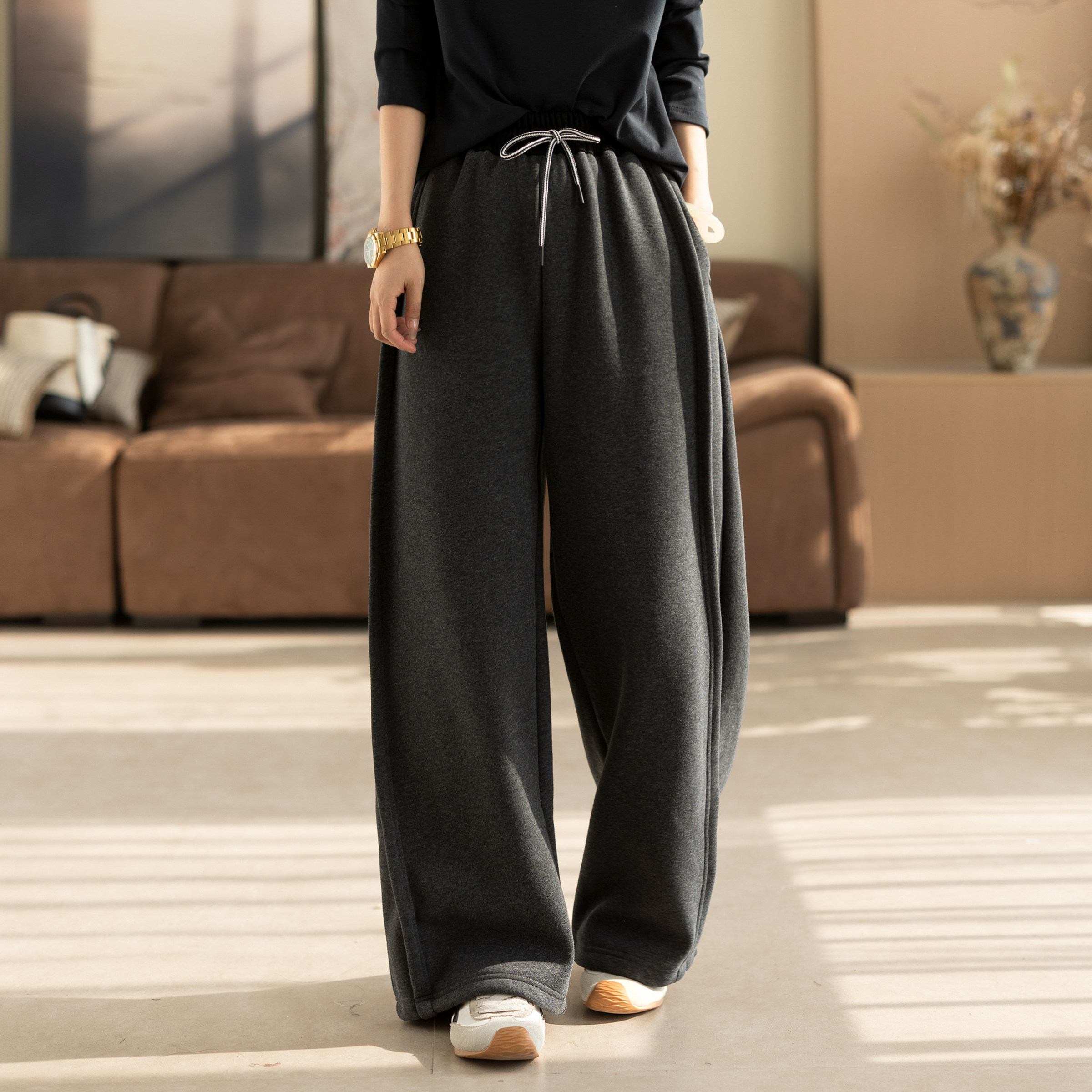糯米裤女羊羔绒垂坠感软糯加绒加厚秋冬韩系慵懒松弛感阔腿裤TB