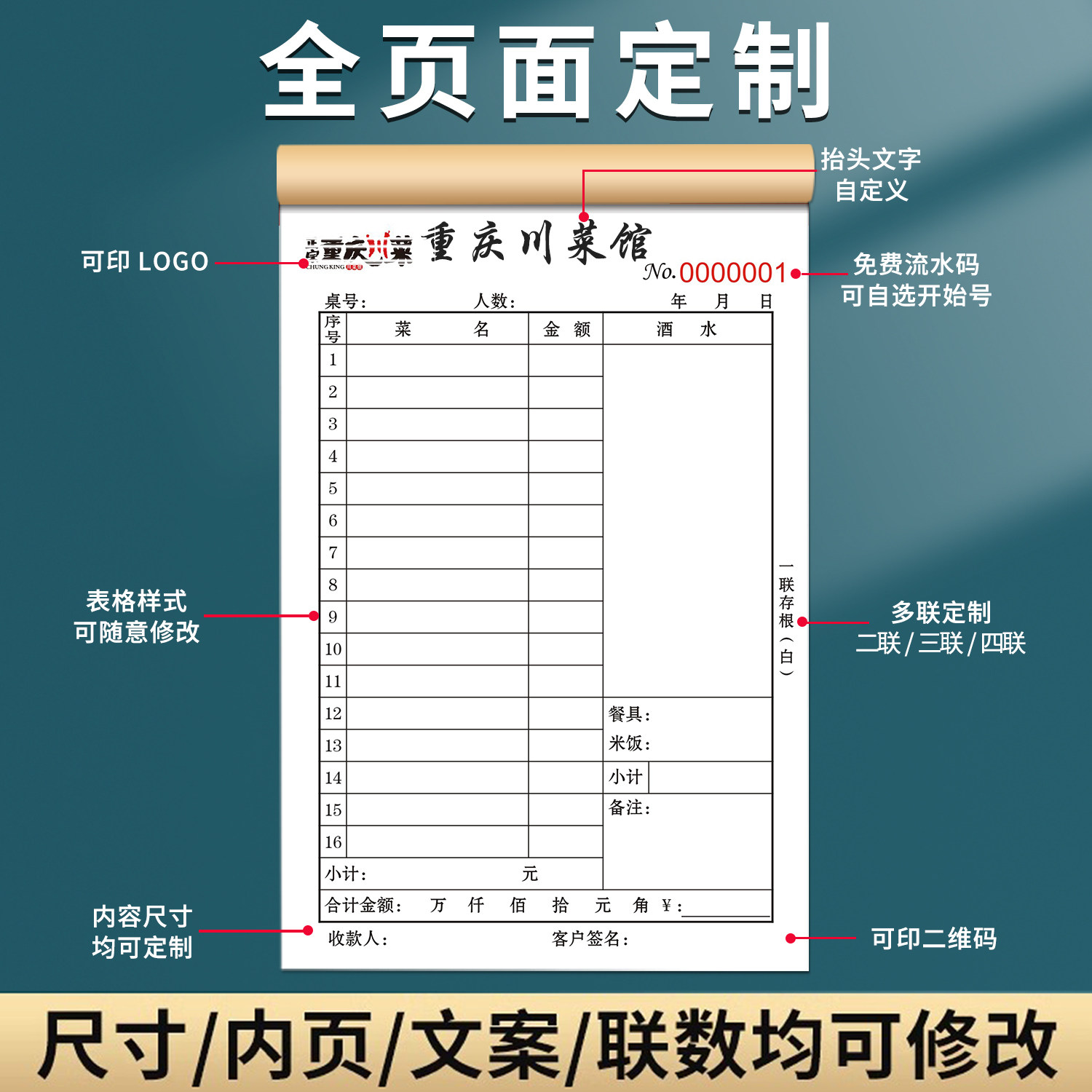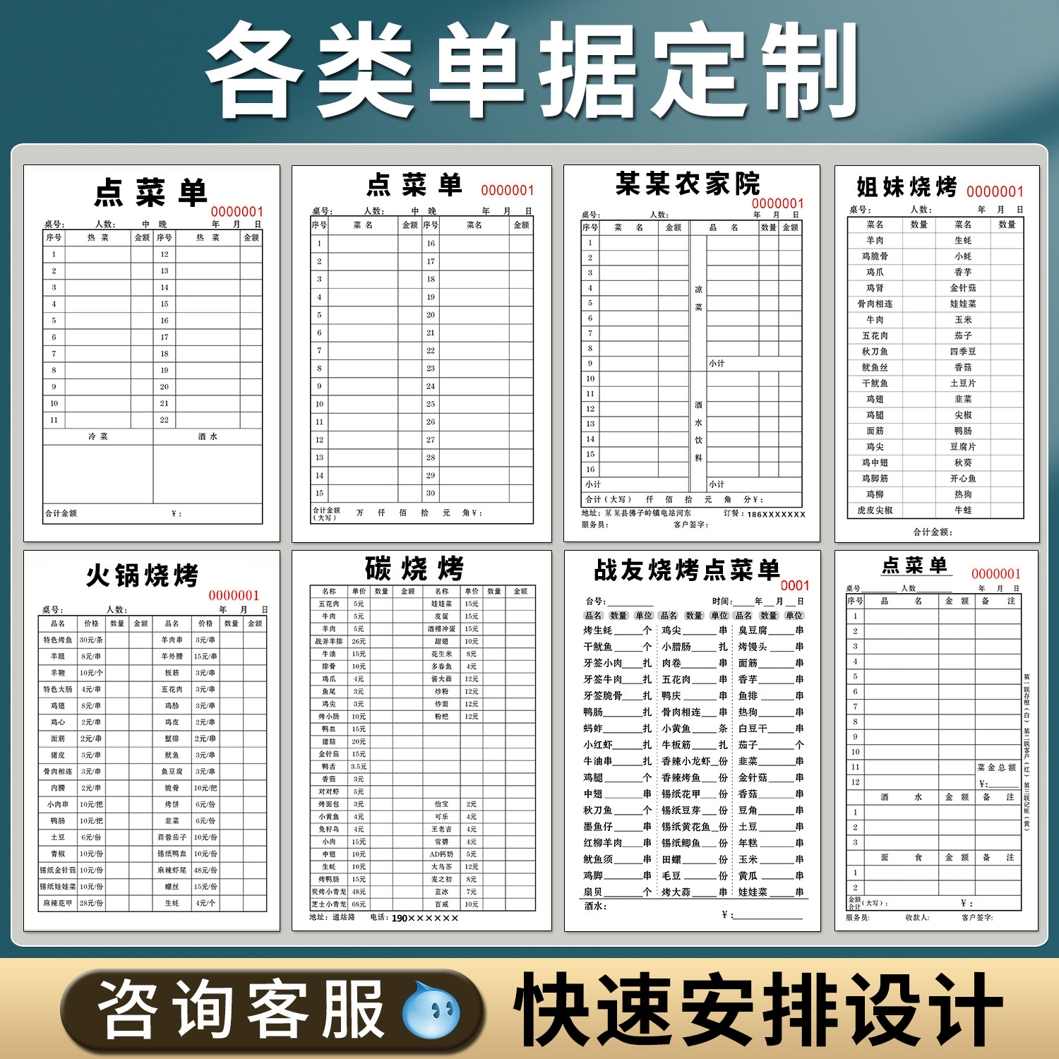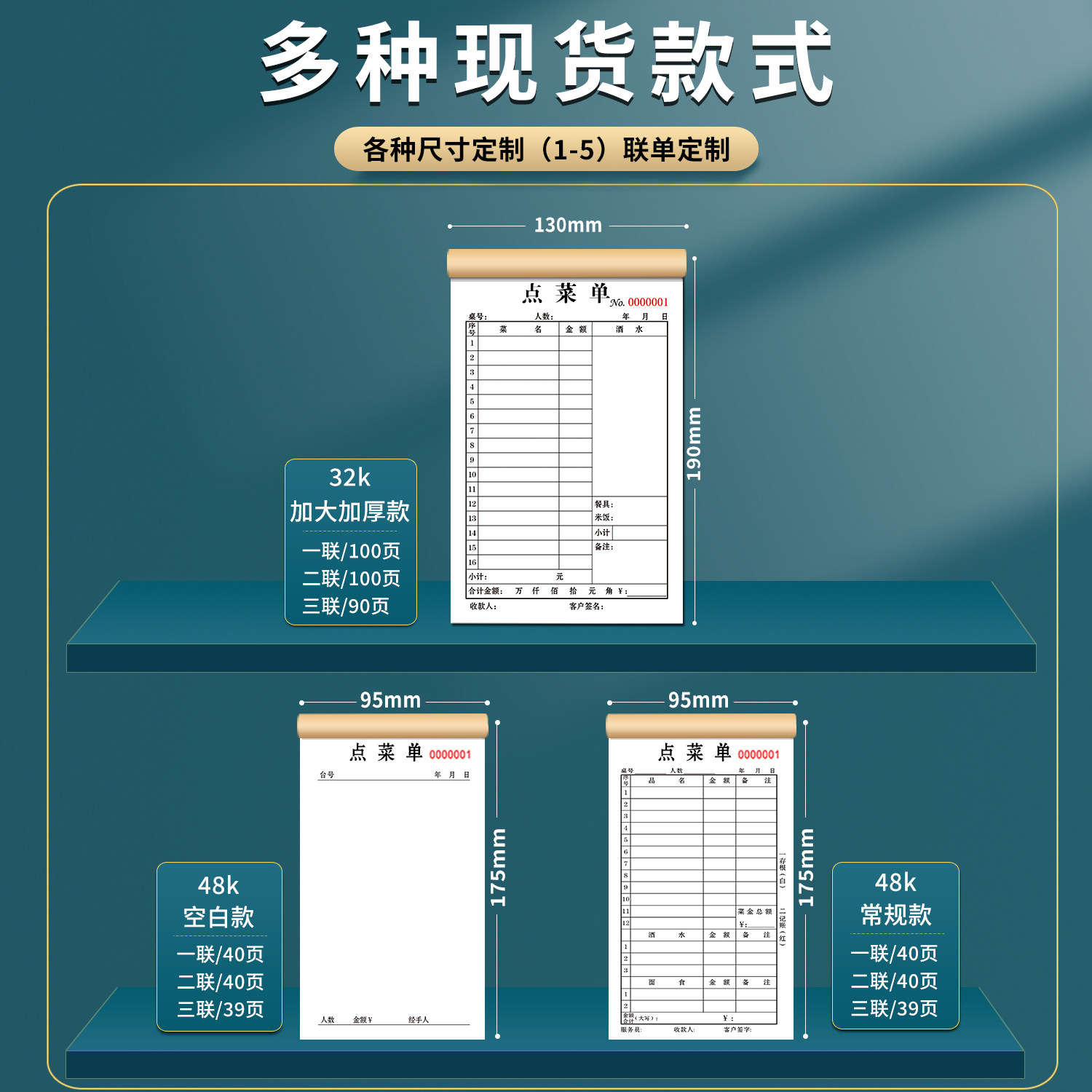 20本大号加厚100页点菜单二联三联一联菜单定制饭店烧烤店餐饮专用单联两联点单本手写菜单本定做酒店火锅店