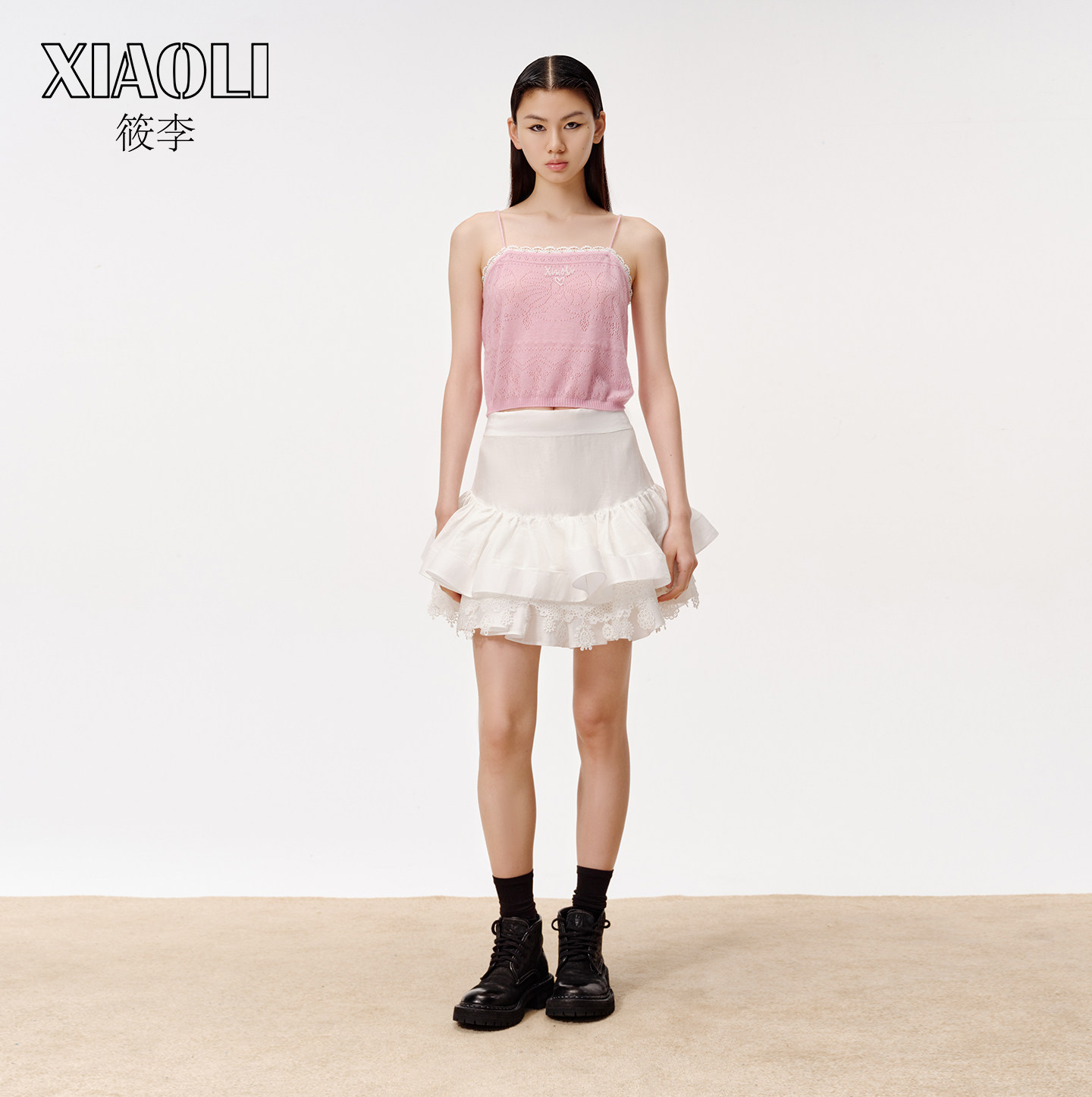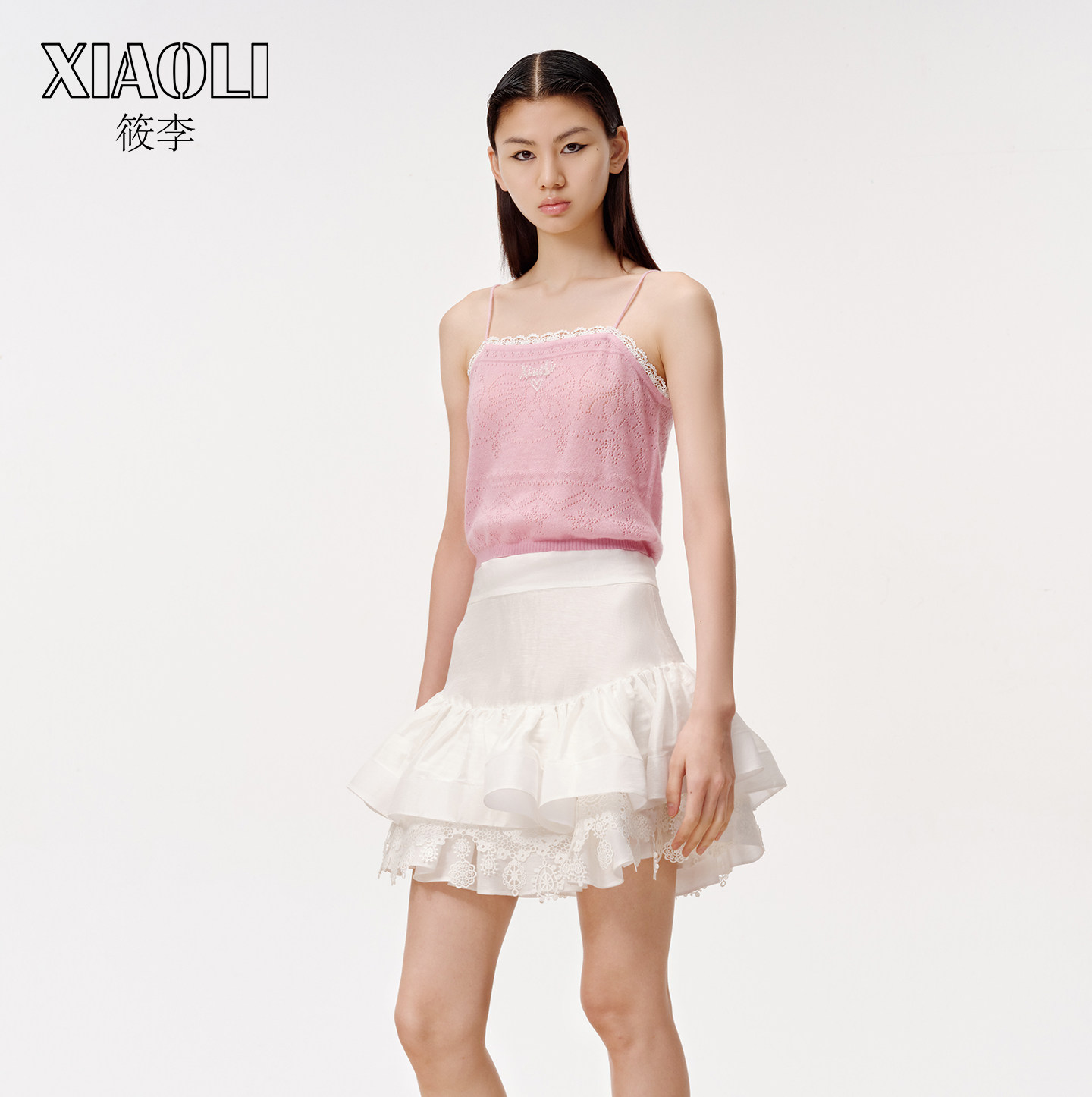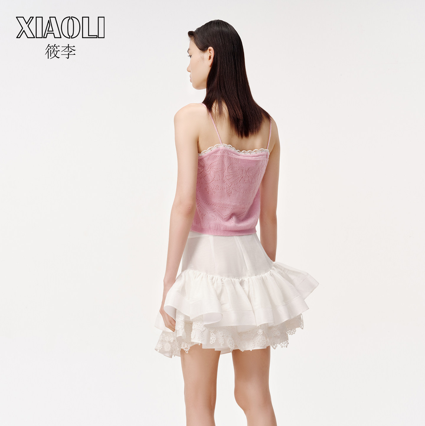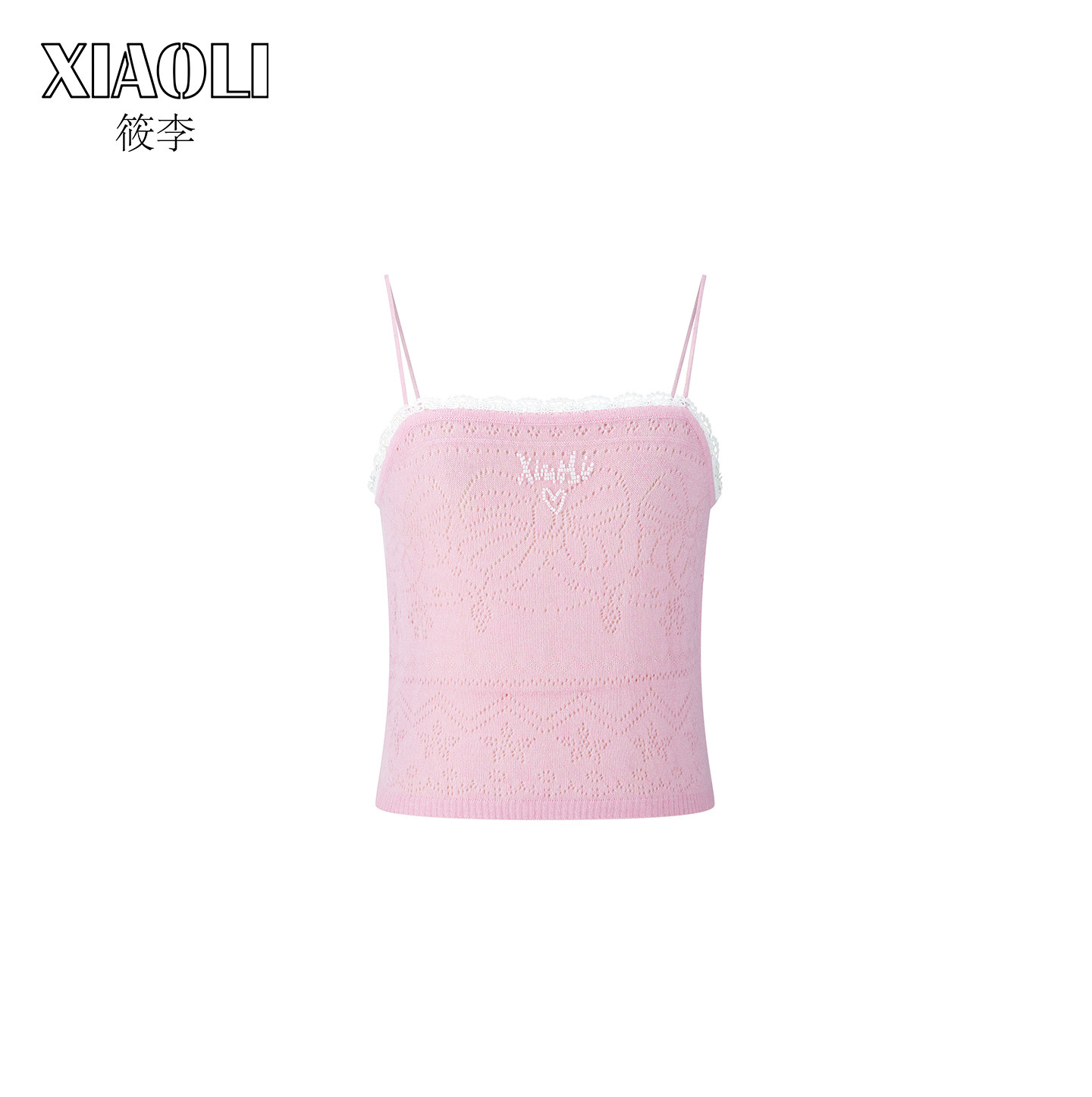 【XIAOLI筱李】少女感粉色丝羊绒挑孔短款针织吊带背心25秋新品