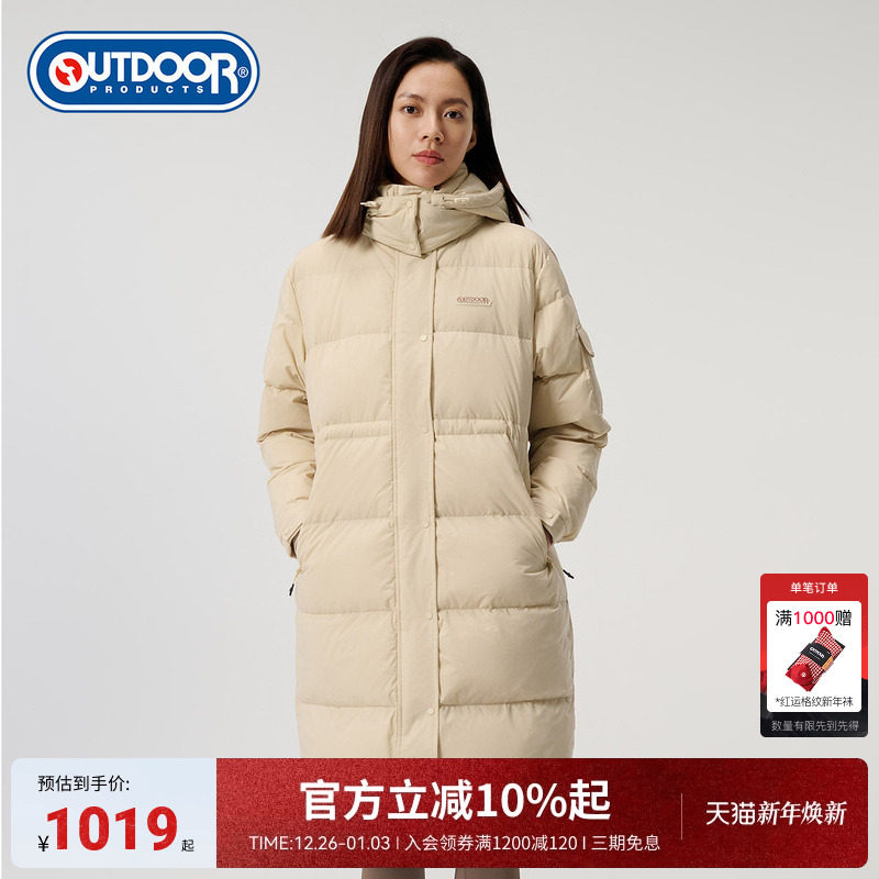 outdoor products秋冬新品羽绒服户外休闲保暖中长款连帽羽绒服