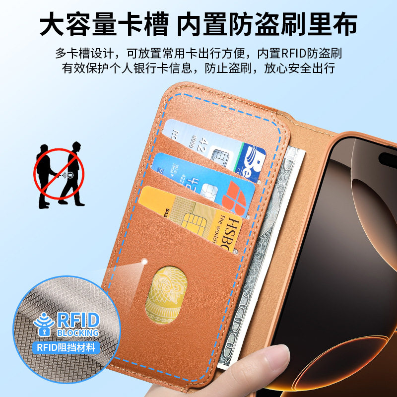 二合一磁吸卡包适用苹果17promax手机壳iPhone16Plus带指环15p插卡钱包皮卡套保护套女装卡背贴Magsafe外壳套