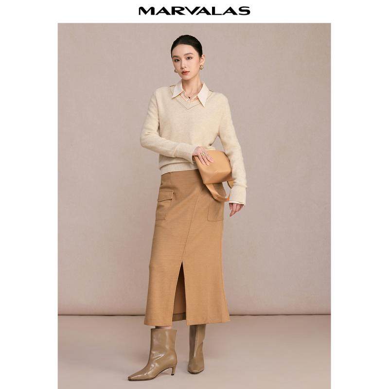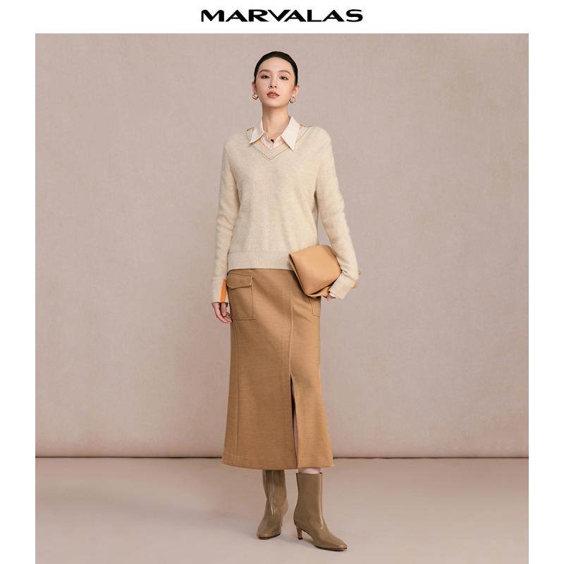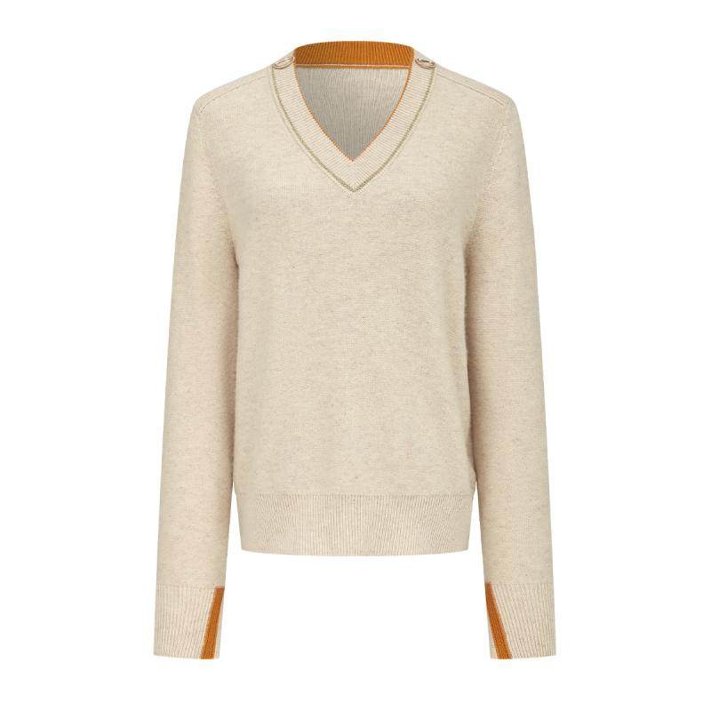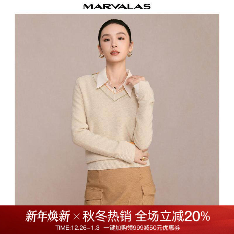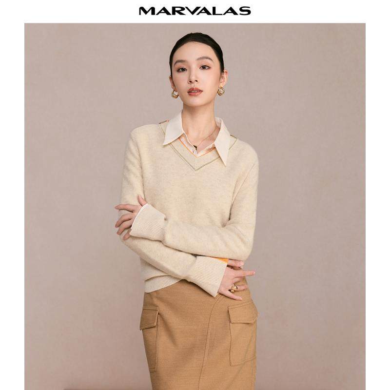 曼德诗绵羊毛针织衫2025秋装新款纯色长袖宽松套头衫撞色毛衣小衫